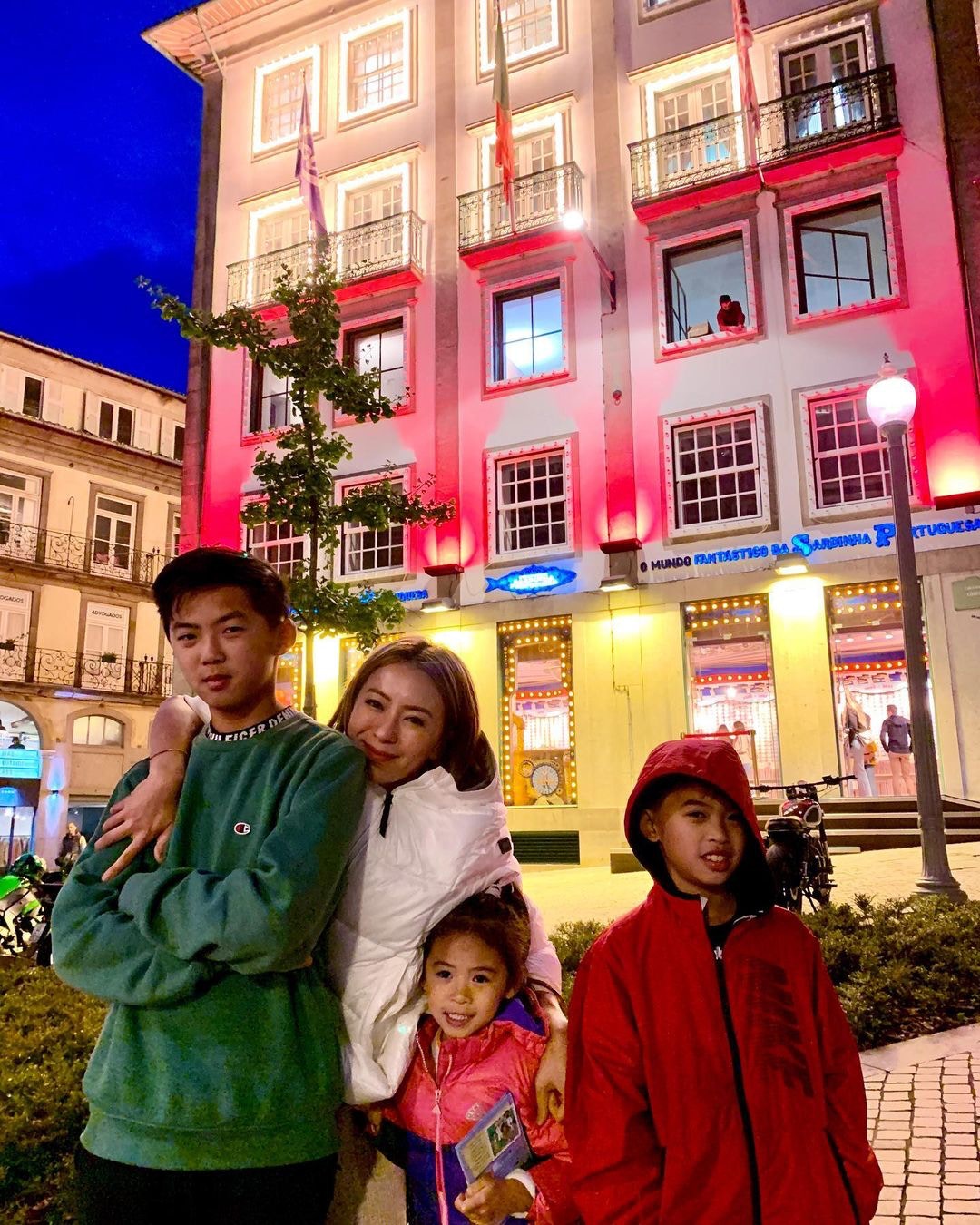 Brendan的身高已經超越媽媽,相中看到Christy不時搭着仔仔膊頭,而Brendan亦有幫忙照顧細妹。(IG/ @imchristyleung)