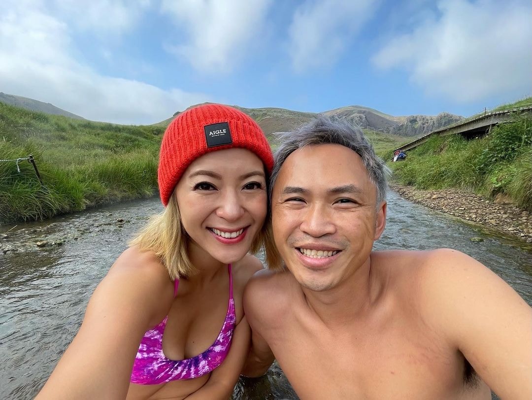 梁芷珮(Christy)與老公Kenneth於冰島浸天然溫泉。(IG:@imchristyleung)