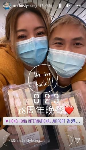 代表TVB到北京採訪冬季奧運會的梁芷珮(Christy),隨住閉幕式完成任務,與同行的老公回程返港,並在檢疫中度過結婚18周年紀念日。Christy不忘放閃公開愛的宣言,更自爆是主動向老公求婚:「18年前嘅今日,我好愛佢所以嫁畀佢,18年後嘅今日,我更加超愛佢,所以去到邊;都黐住佢!」