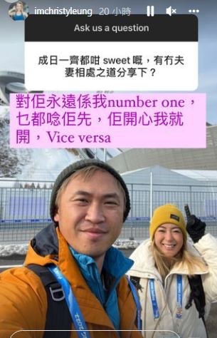梁芷珮(Christy)與網友玩你問我答,分享與老公的小秘密。(IG/@imchristyleung)