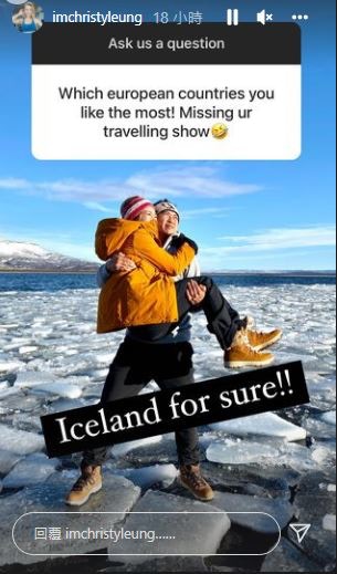 梁芷珮(Christy)與老公Kenneth出發到冰島拍攝。(IG:@imchristyleung)