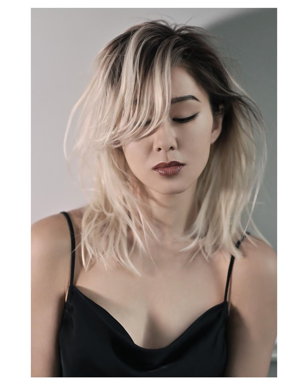 定欣穿上黑色吊帶背心,加上一頭充滿凌亂美的金髮,野性得來帶點性感。(IG/ @nwuuu)