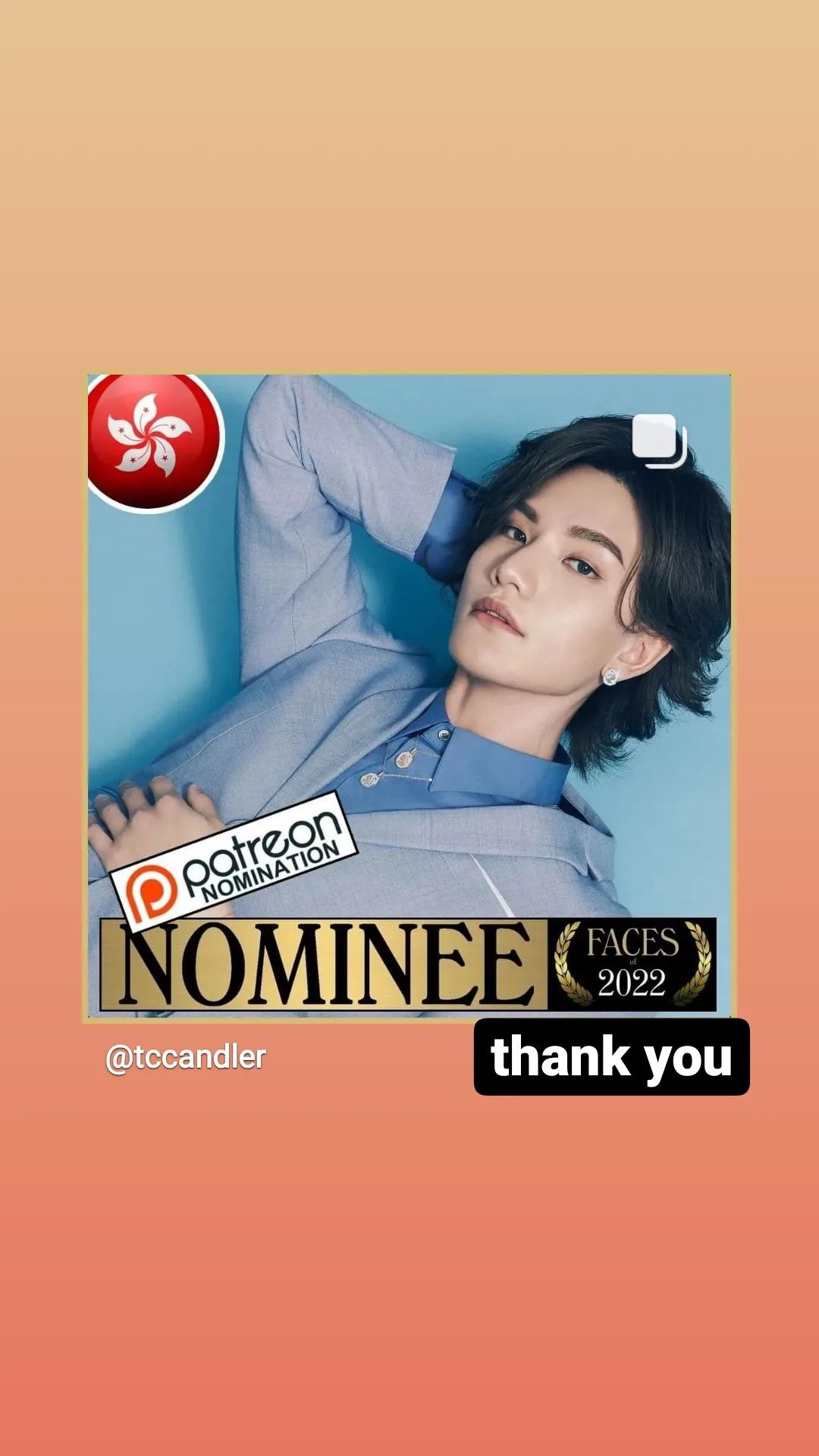 他在IG限時動態引用《愛情值日生》的歌詞「這份愛最重要入圍/有位置就夠/我沒理排第幾」來答謝網民的支持,更笑指網站所揀選的照片十分有趣:「但點解要用呢張相,感覺綜藝之神一直冇離開我」。消息一出,網民驚喜之餘亦紛紛集氣望肥仔入圍:「幾時到肥仔(梁業)入圍?」如果成事,MIRROR、ERROR16子便會一同角逐靚仔殊榮!