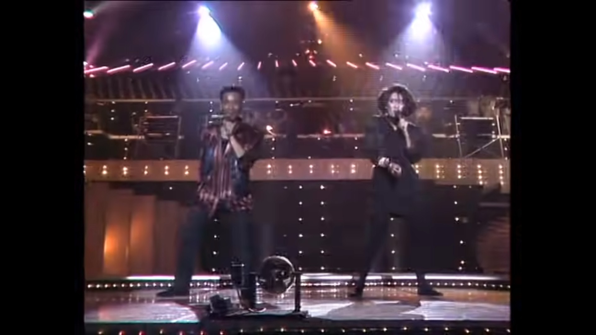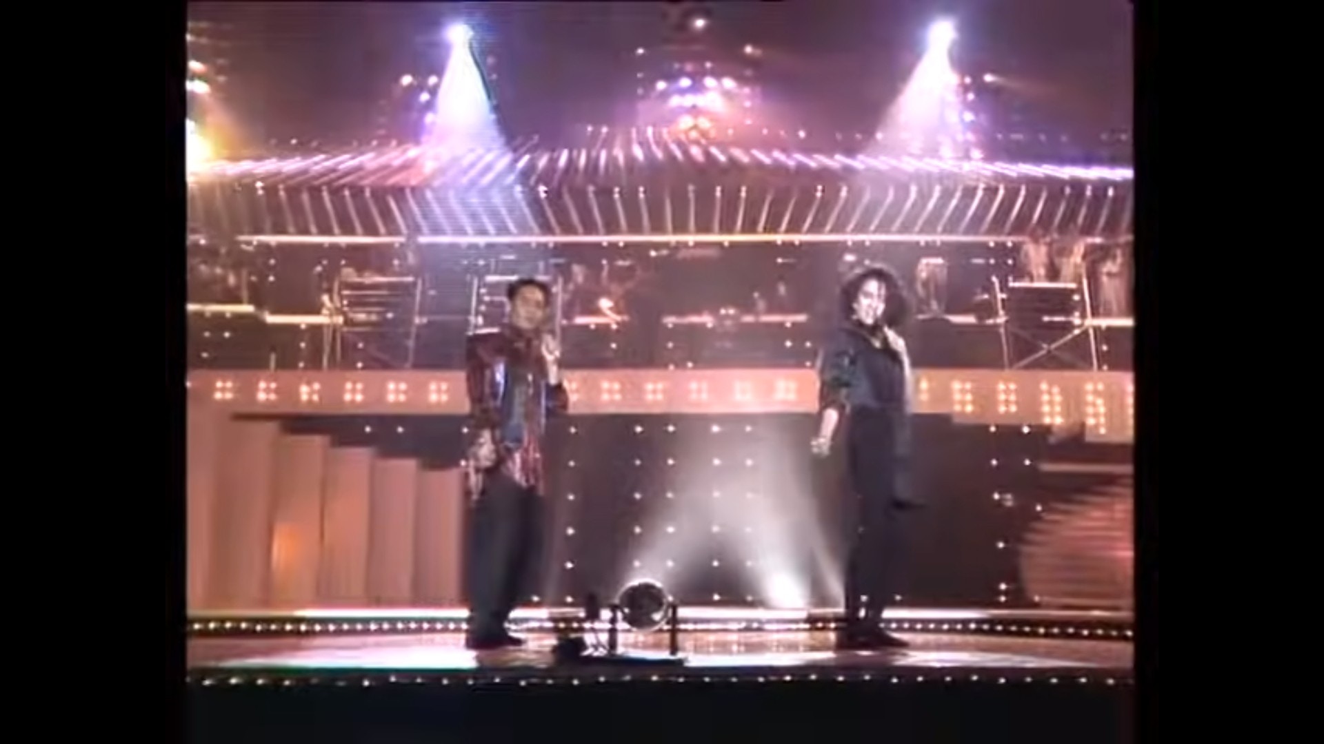 哥哥與梅姐在1986年《白金巨星耀保良》合唱《冰山大火》。(影片截圖)