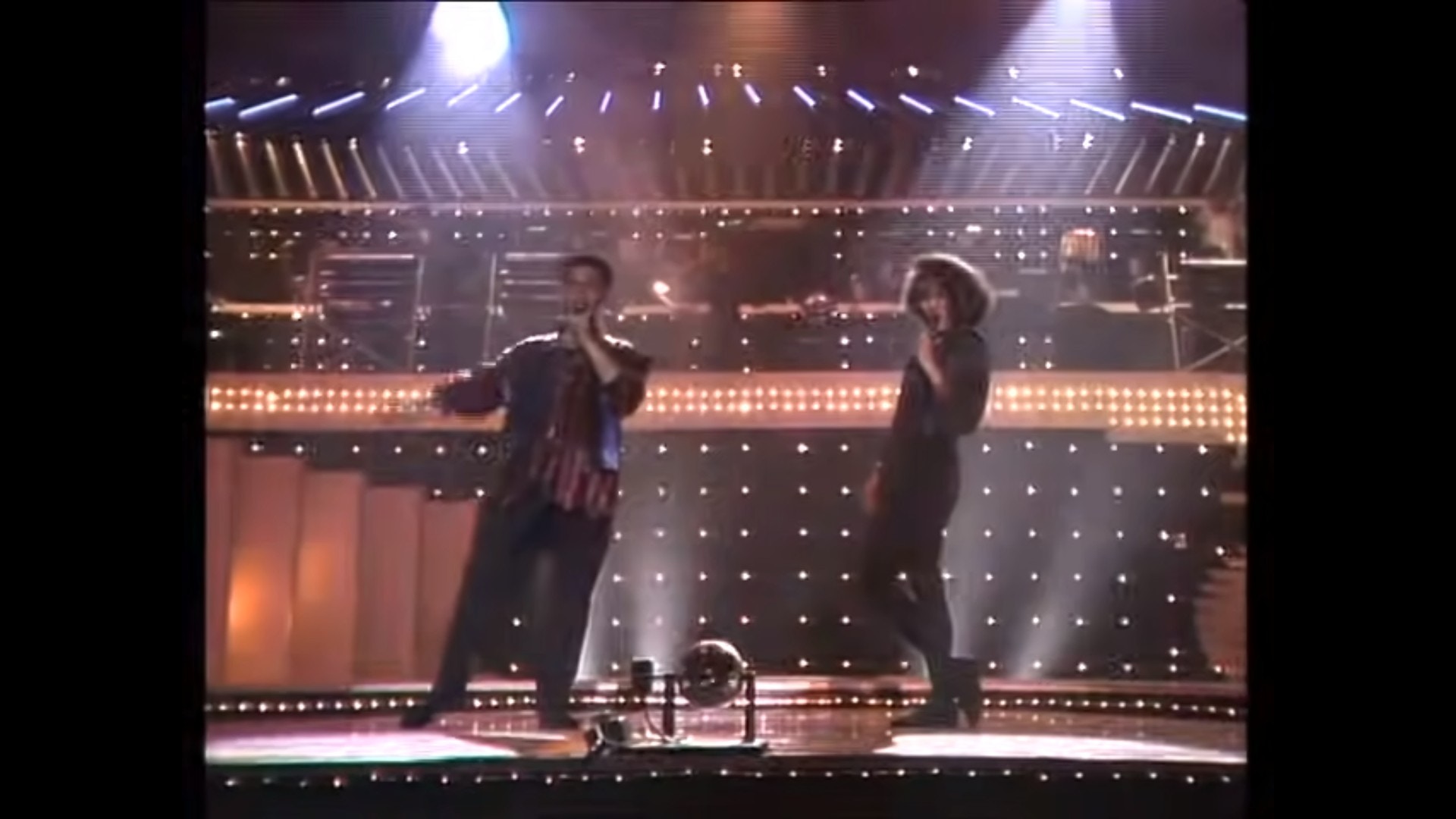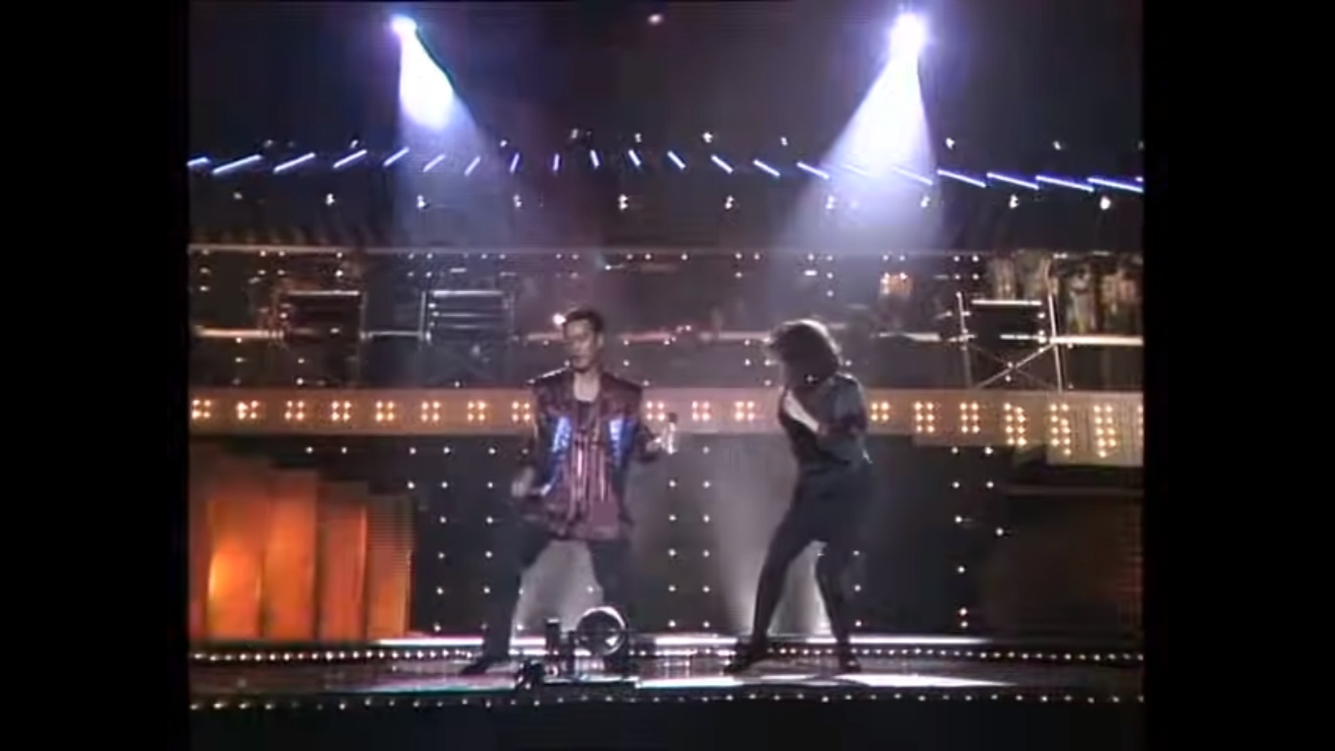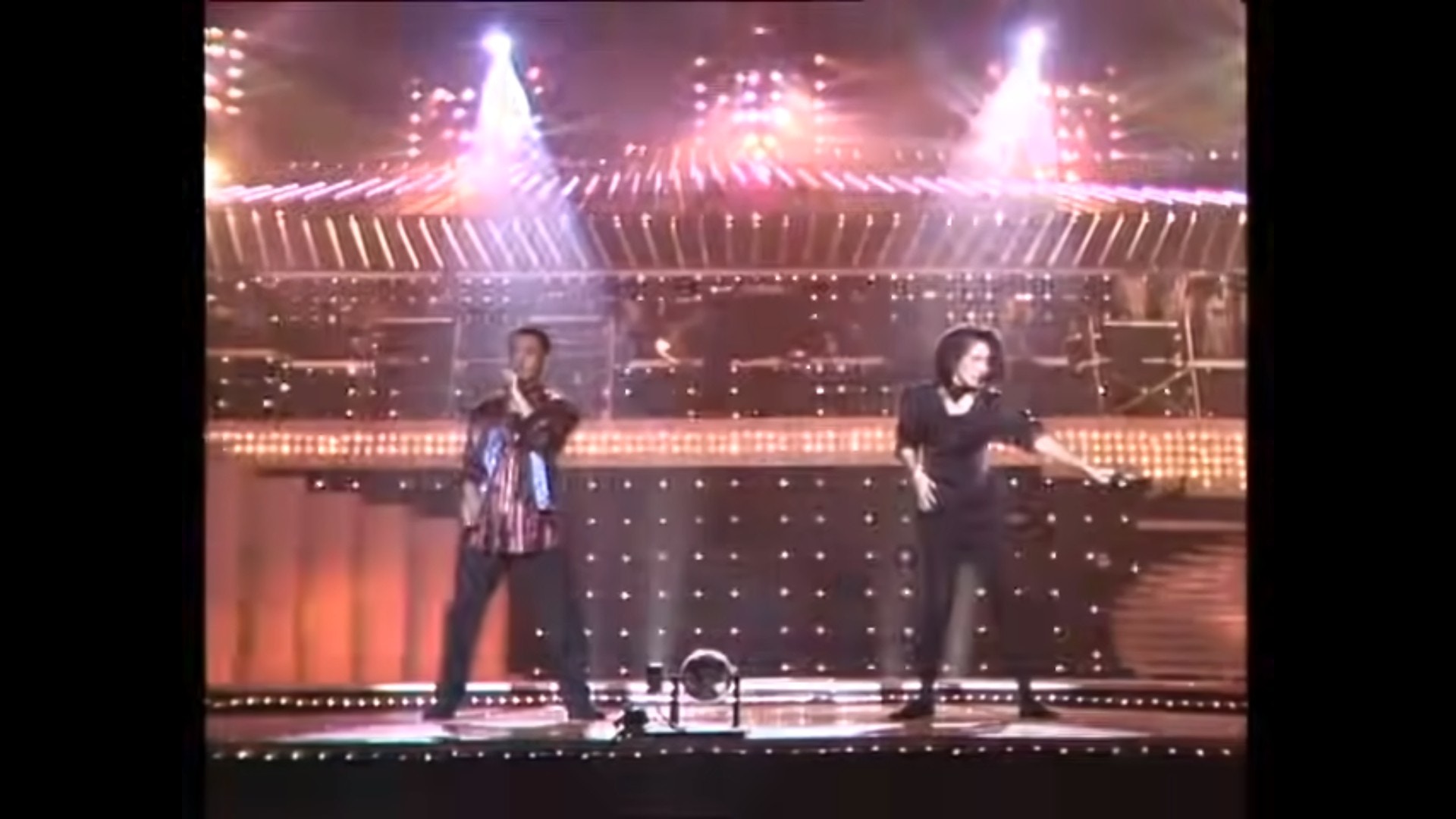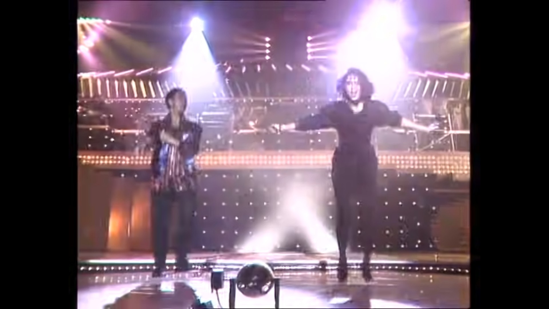 哥哥與梅姐在1986年《白金巨星耀保良》合唱《冰山大火》。(影片截圖)