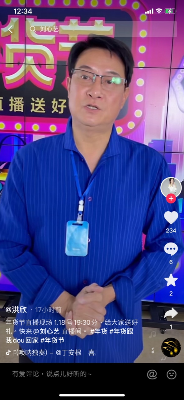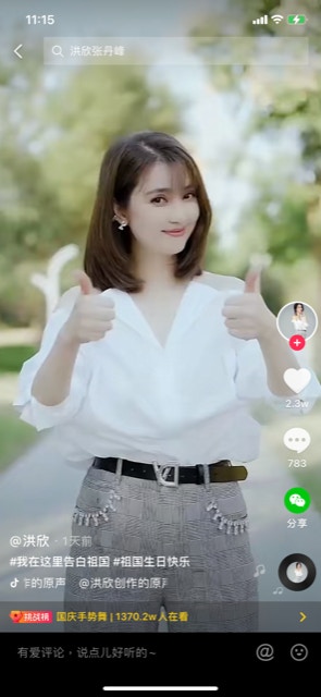 洪欣成日玩抖音。(抖音截圖)