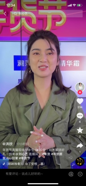 洪欣被指走晒樣。(抖音截圖)