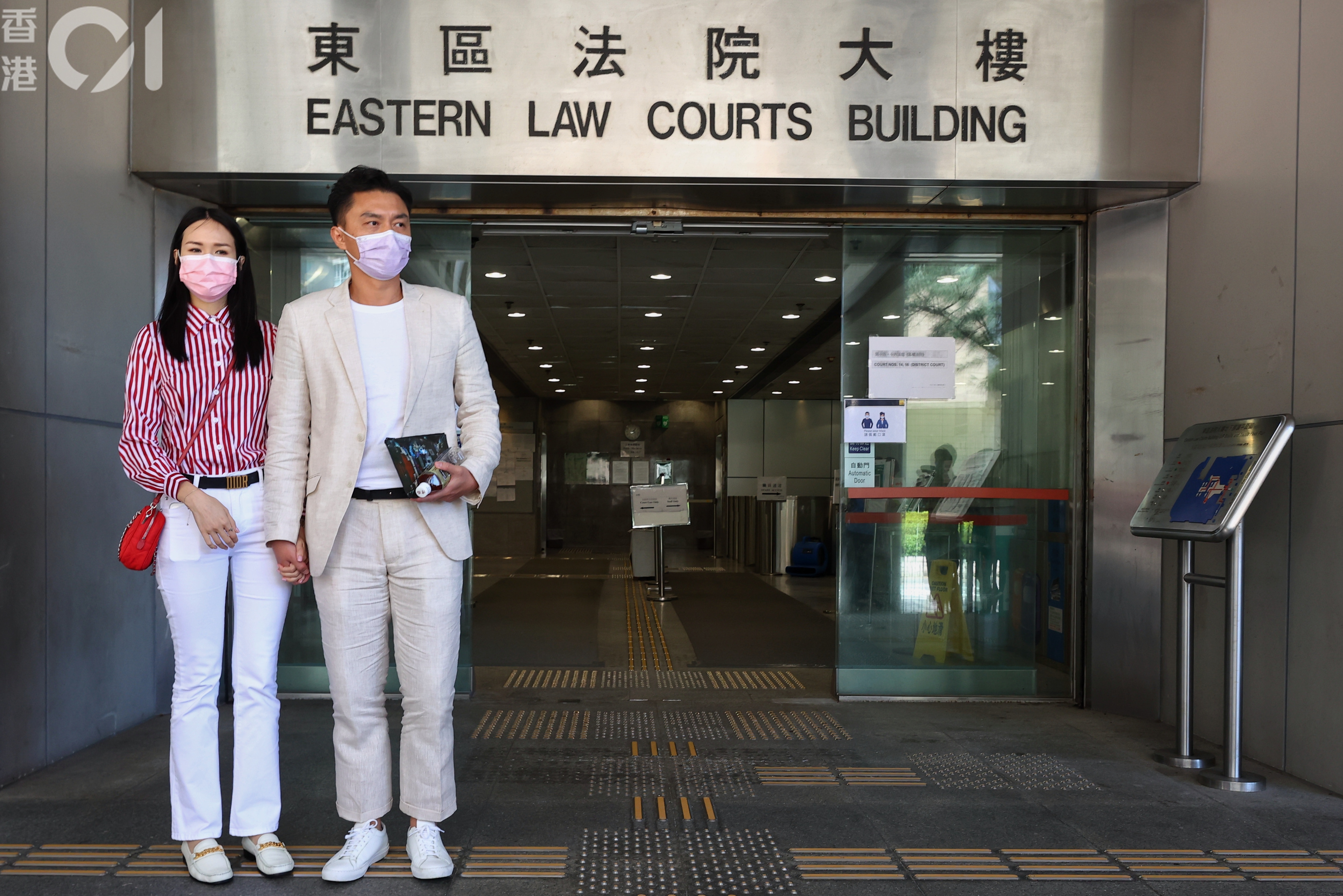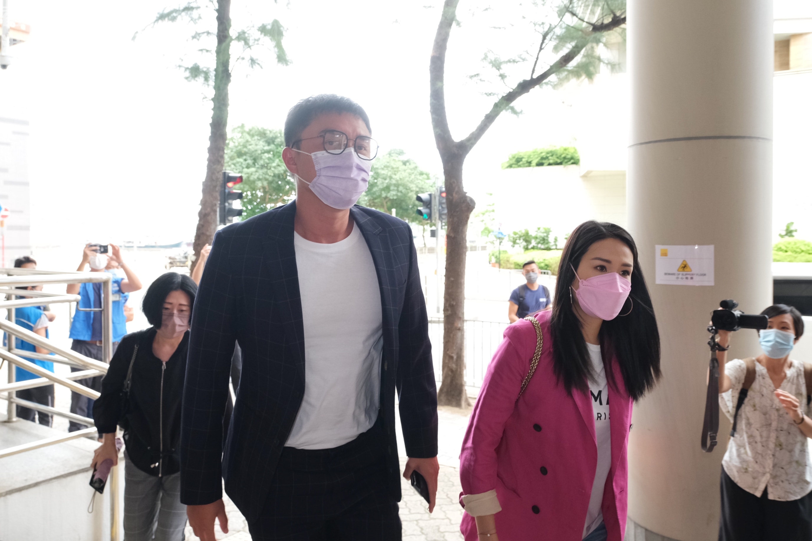 藝人楊明在女友莊思明的陪同下到達法庭。(盧翔銘攝)