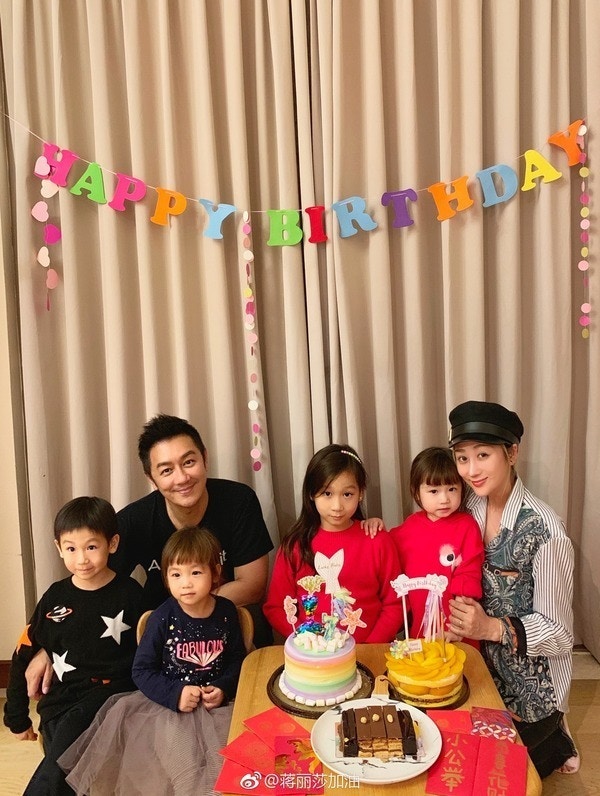 陳浩民在2011年跟比他小16年的蔣麗莎結婚,更5年抱4,他們經常在網上曬幸福。(微博圖片@蔣麗莎加油)