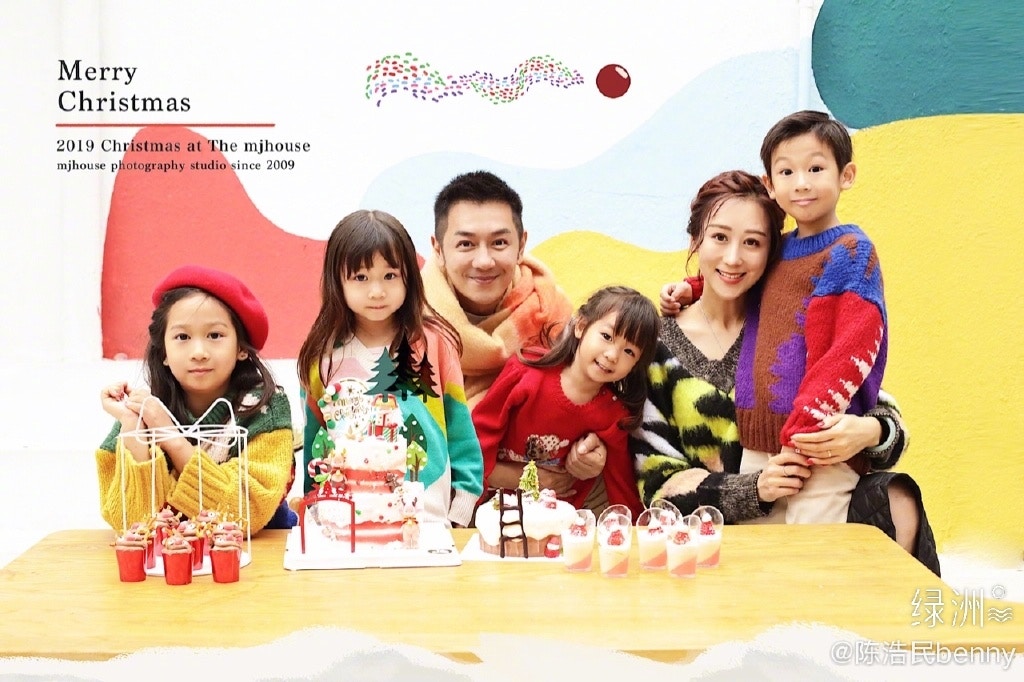 陳浩民跟太太蔣麗莎五年抱四,一家六口,非常熱鬧。(網上圖片)