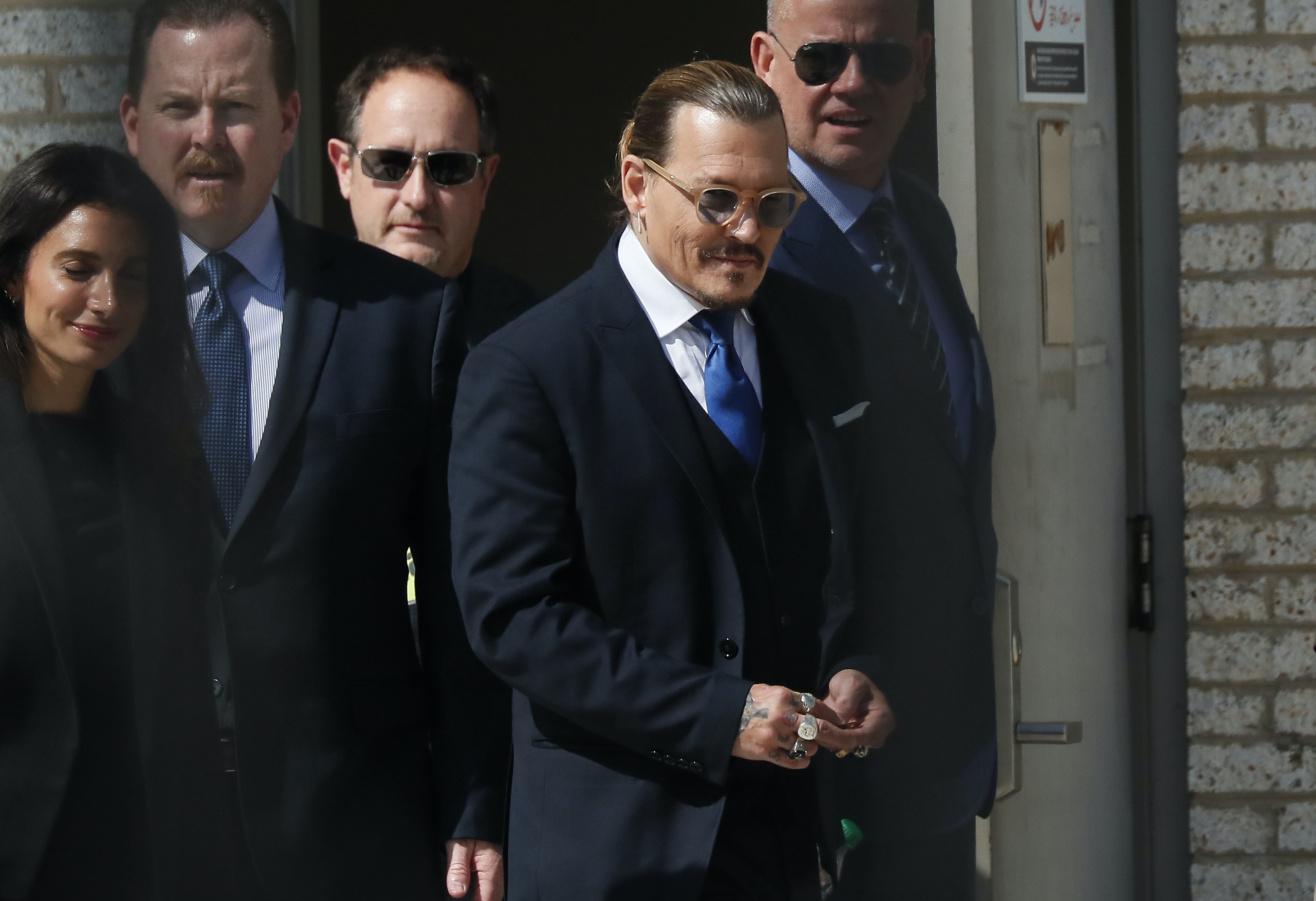 圖為尊尼特普(Johnny Depp)2022年5月27日離開位於維珍尼亞州的地方法院,有不少影迷現身支持他,他向在場人士揮手。(AP)
