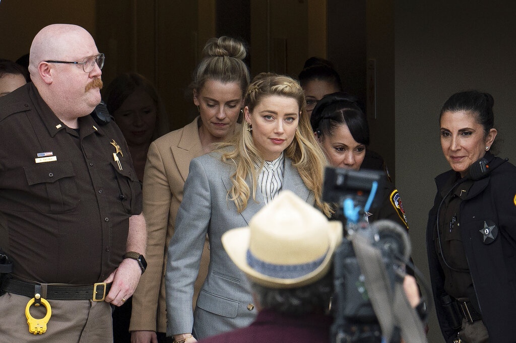 美國維珍尼亞州費爾法克斯法院2022年5月31日恢復審議荷里活影星尊尼特普(Johnny Depp)與前妻安芭赫德(Amber Heard)之間的官司。圖為5月27日,安芭赫德在雙方律師完成結案陳詞後離開法院。(AP)