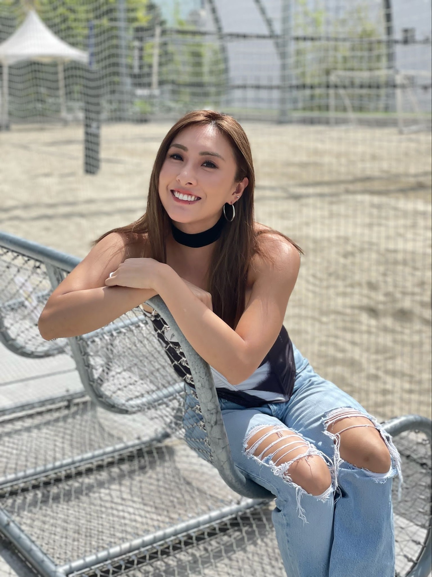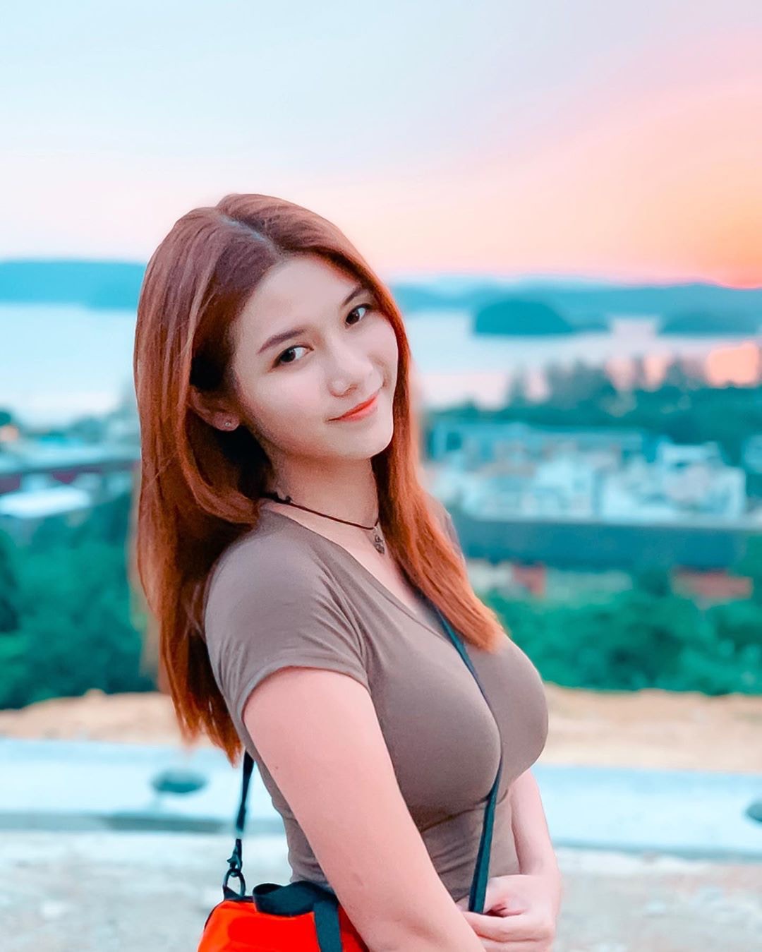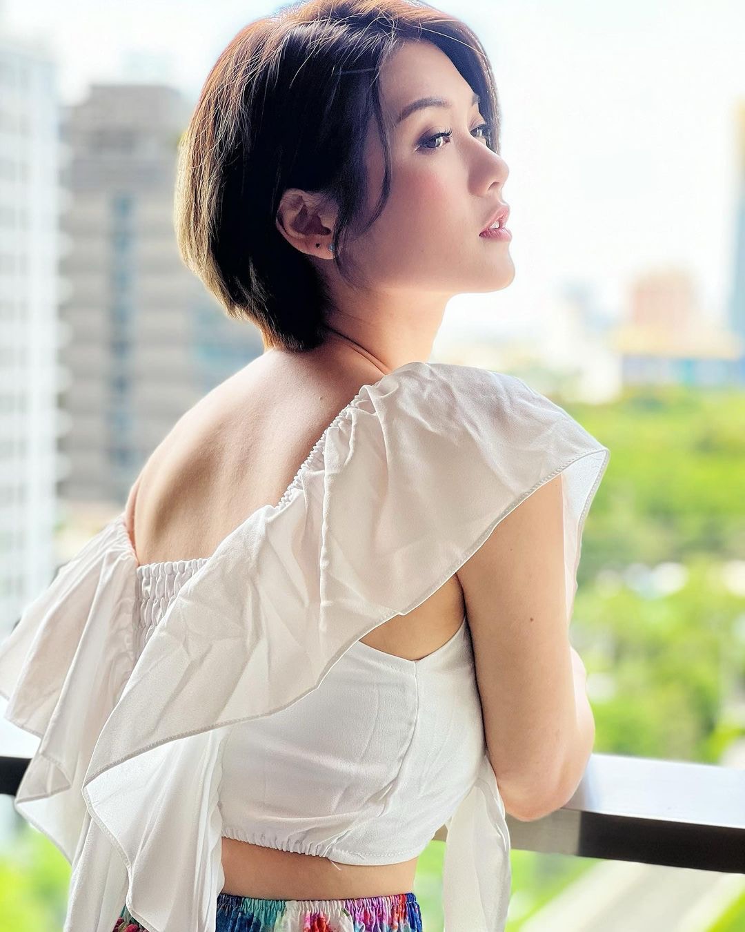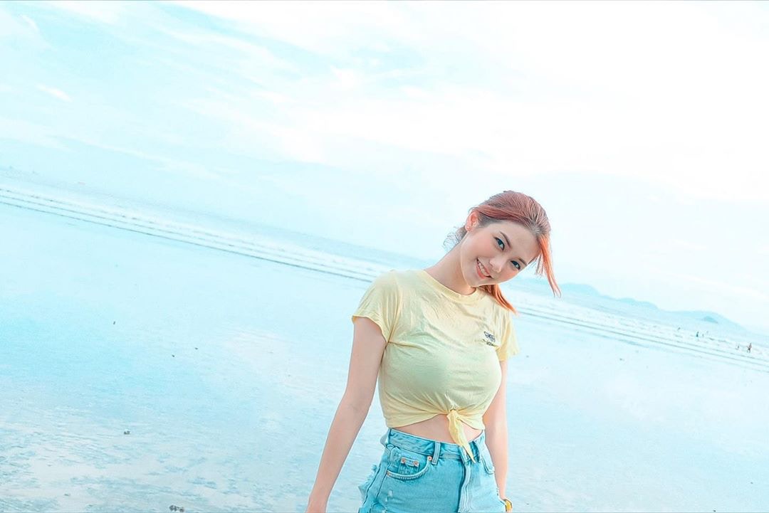 沙律更曬出男友視角照片,只見穿着小背心的她身體微微向前傾、盡顯身材曲線(Instagram/@charlottecheung107)