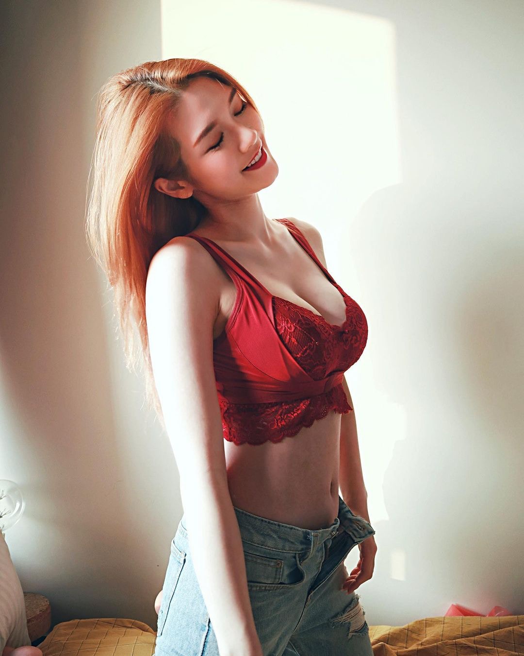 新po着紅色內衣。(Instagram@charlottecheung107)