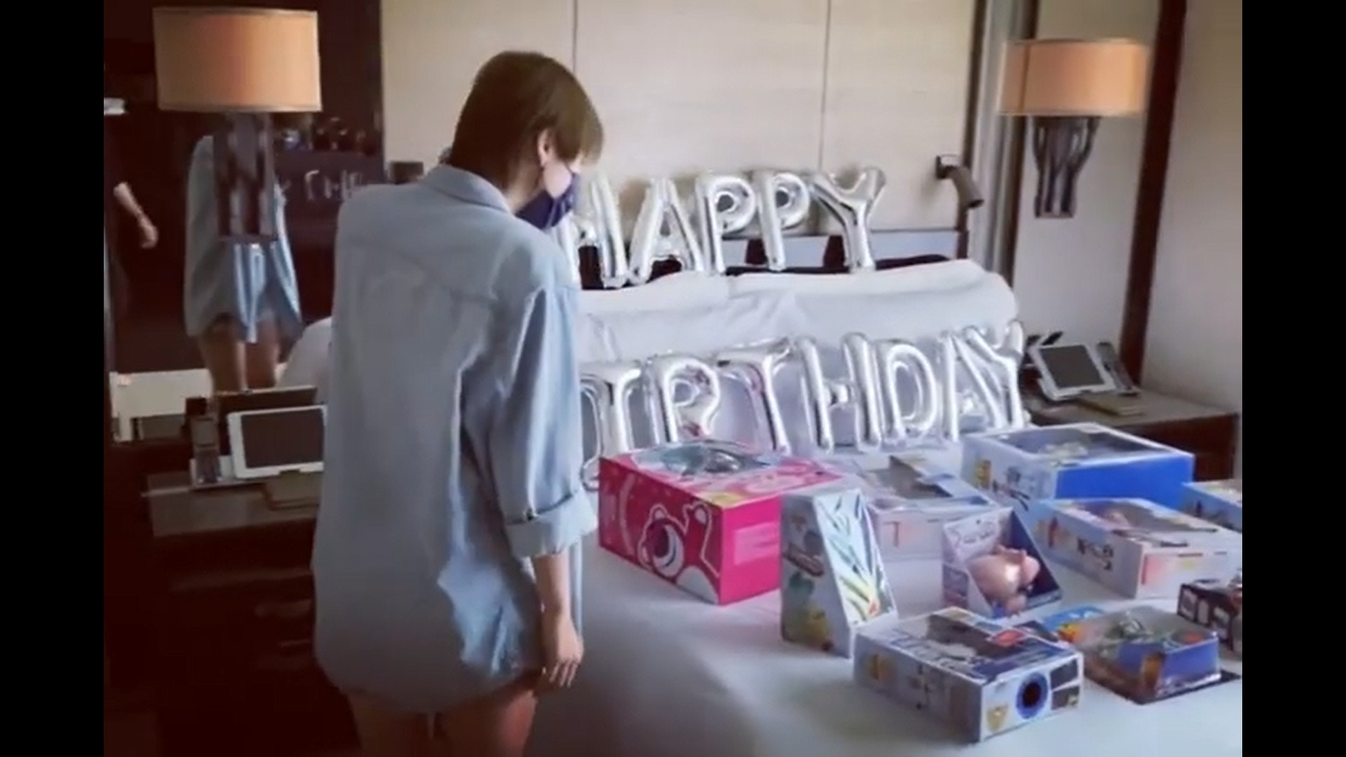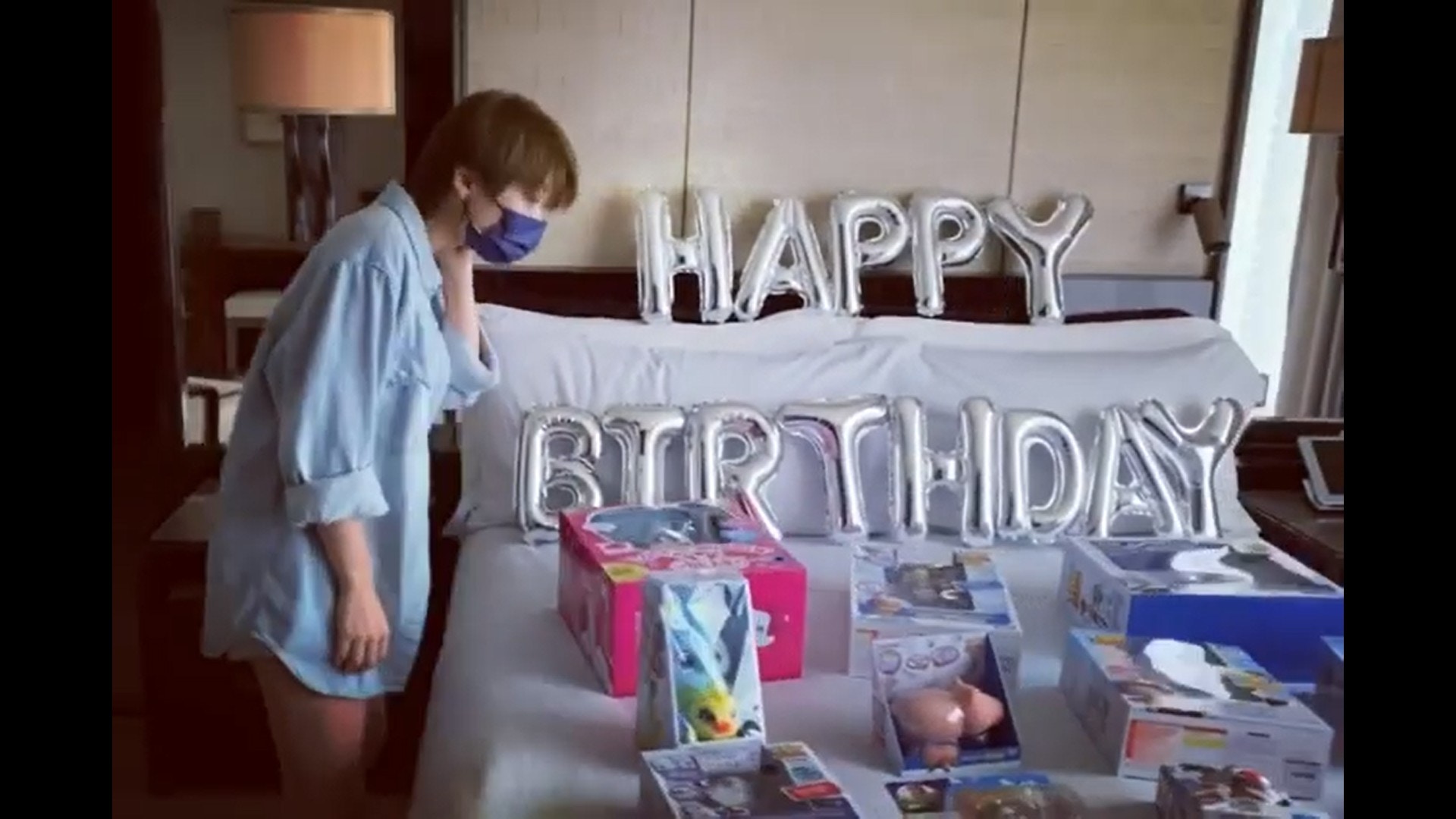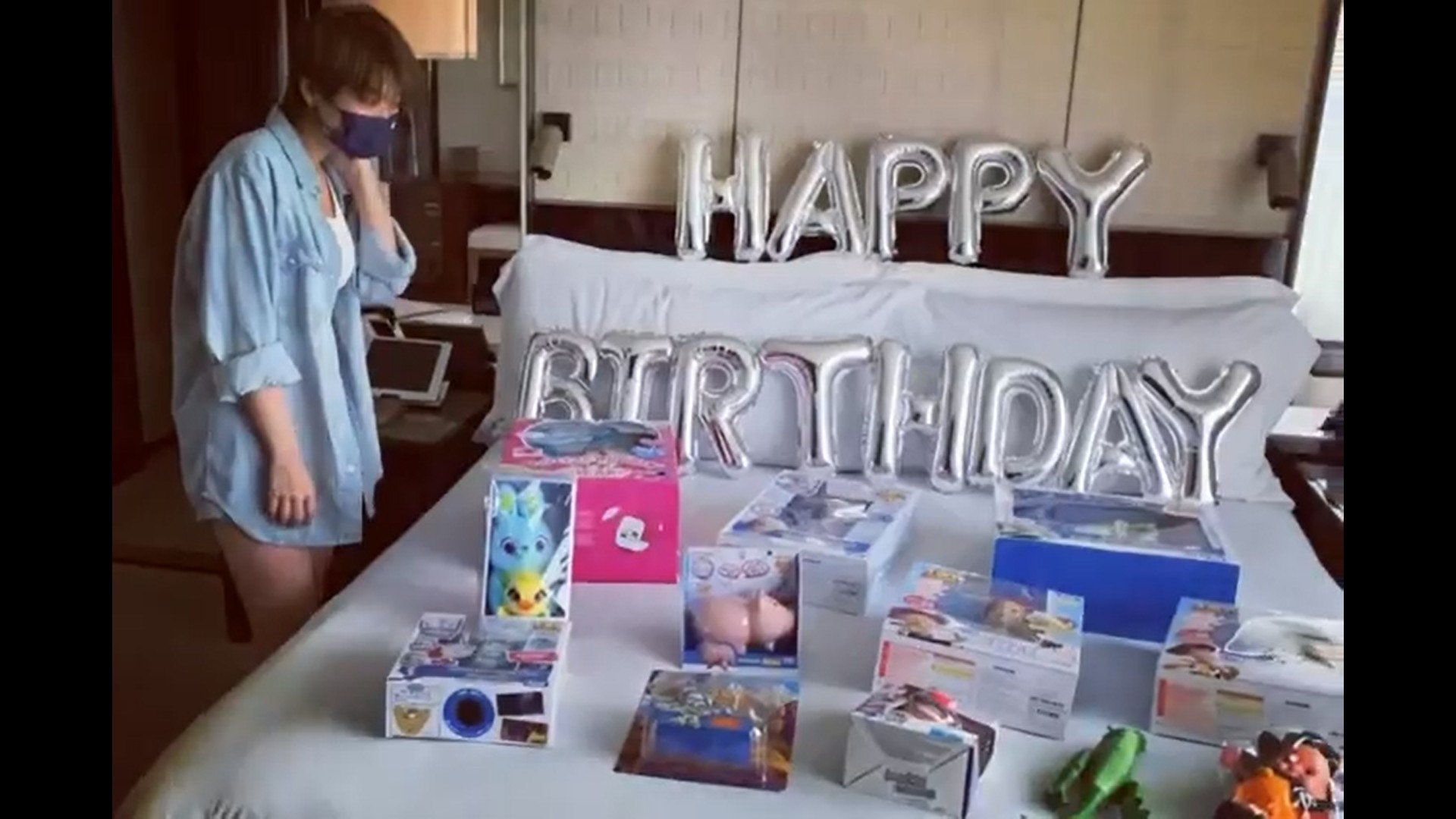 ,二人到酒店Staycation之餘,保錡更送上鋪滿一床的迪士尼玩具(IG/@charlottecheung107)