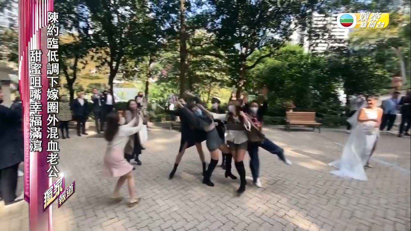 只邀請了少量朋友見證,包括陳婉衡、鍾晴、方詩揚及剛結婚的陳詩欣,但她們都搶不到花球。(節目截圖)