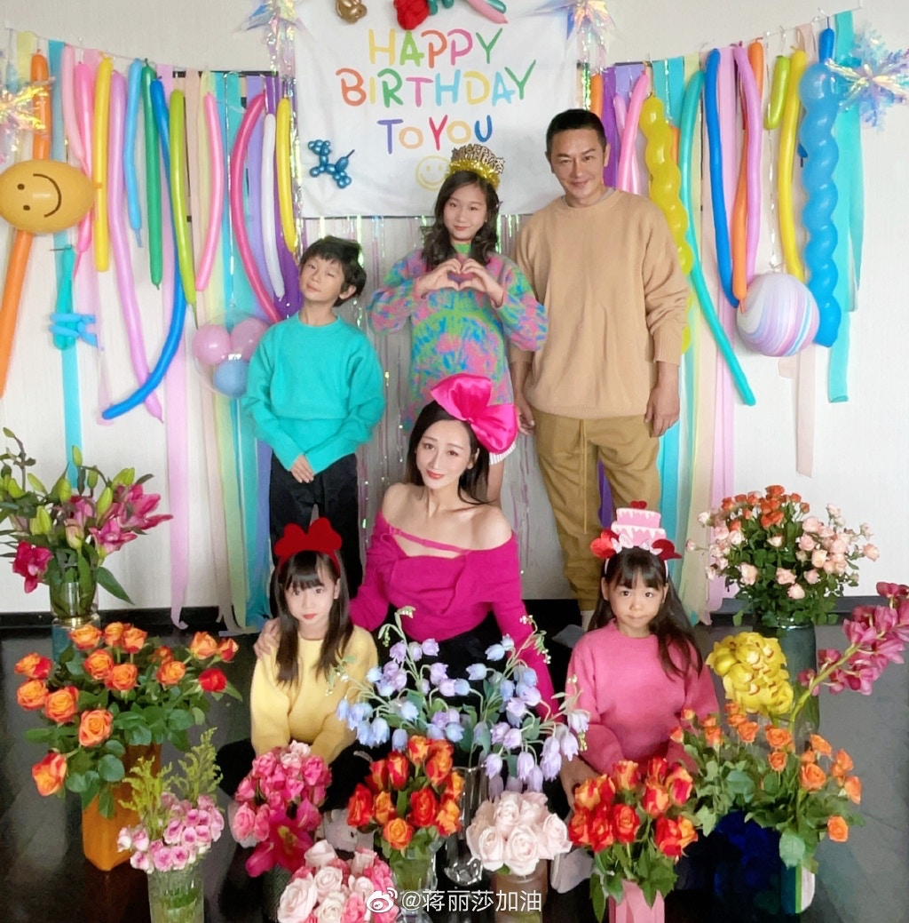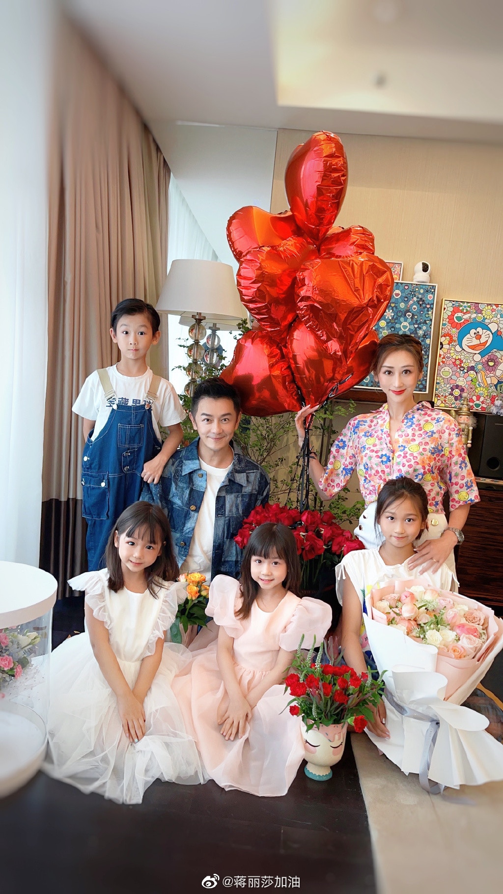 陳浩民在2011年跟比他小16年的蔣麗莎結婚,更5年抱4,他們經常在網上曬幸福。(微博圖片@蔣麗莎加油)
