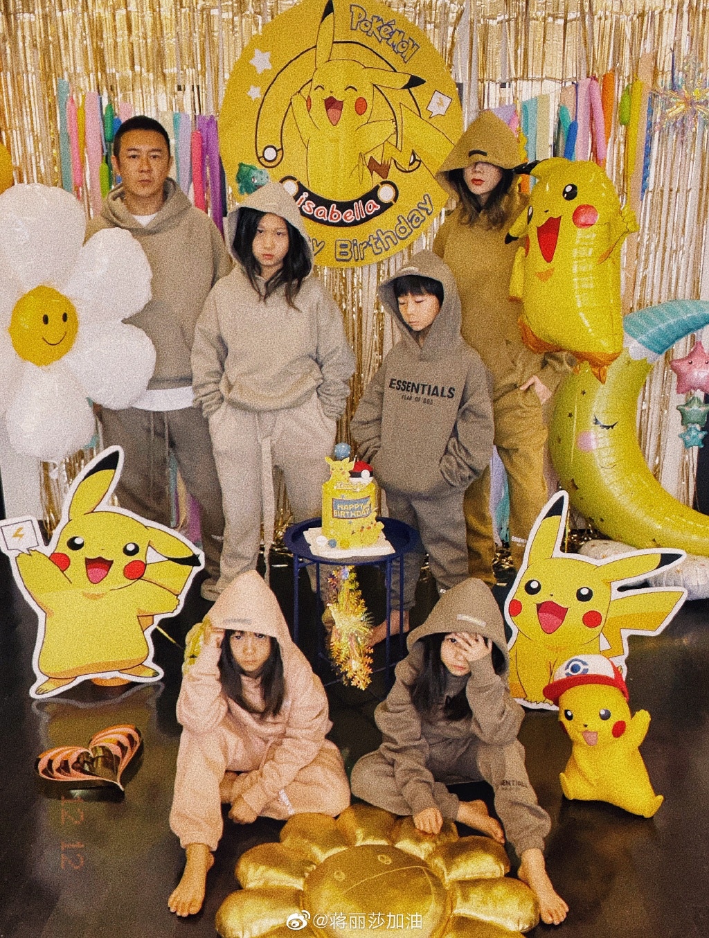 蔣麗莎專心湊兒女。(微博@蔣麗莎加油)
