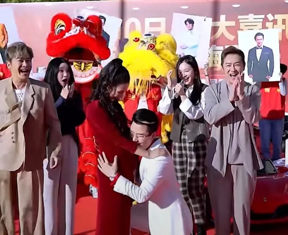 陳浩民更即場跪謝粉絲,冒雨出席見面會。(橫店影視城圖片)