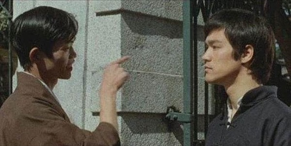 元華由10歲開始,就已經在片場工作。而他第一次在幕前出鏡,就正正是李小龍的《精武門》。李小龍在公園踢碎「華人與狗不得內進」木牌的經典一幕,開首過去挑釁李小龍的日本人,便是元華。(圖片擷取自https://bit.ly/378fdYD)