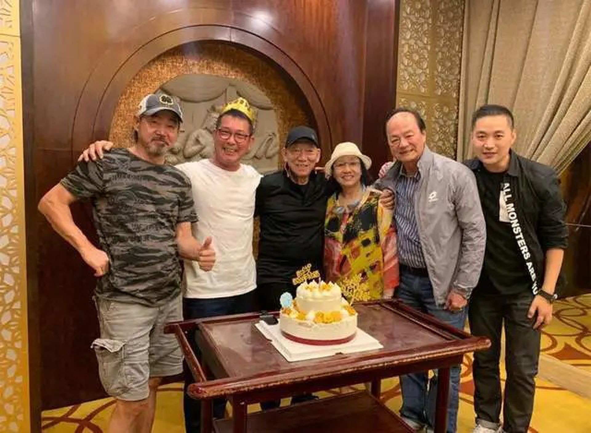今年五月,元華、元秋、袁和平、狄龍為元彪慶生,元彪搭着師兄元華膊頭,笑得非常開心,眾人聚首一堂,非常難得,不少網民都喜見幾位老戲骨面色紅潤,精神奕奕!(影片截圖)