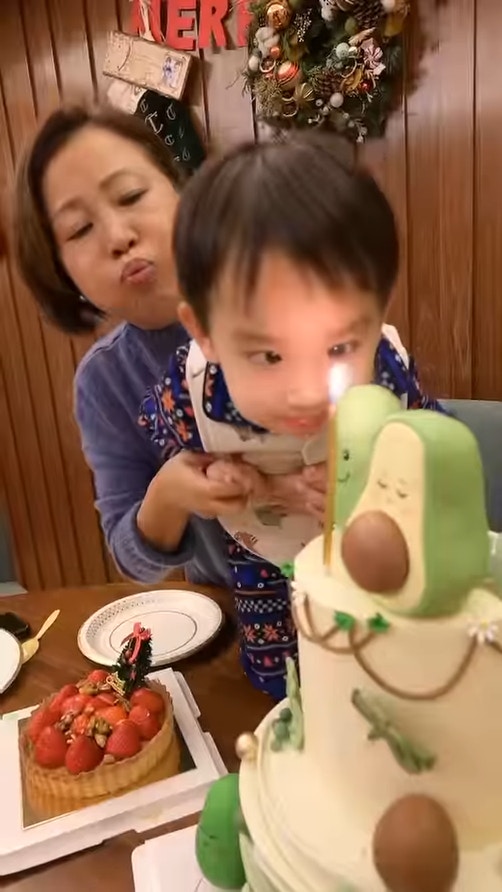 片中可見他們一家與親友在家中食晚飯,菜式包括有名貴海味盤菜,蒸魚、還有大拖羅等貴價刺身,餸菜相當豐盛,大人食得開心,小朋友都玩得好開心。Grace又親吻了爸媽,她的兩個仔仔都有錫錫公公婆婆,畫面十分之溫馨。而Grace的仔仔就愈大愈靚仔,尤其是大仔Rafael更是與公公愈來愈似樣,一雙眼睛勁精靈,印證了隔代遺傳。