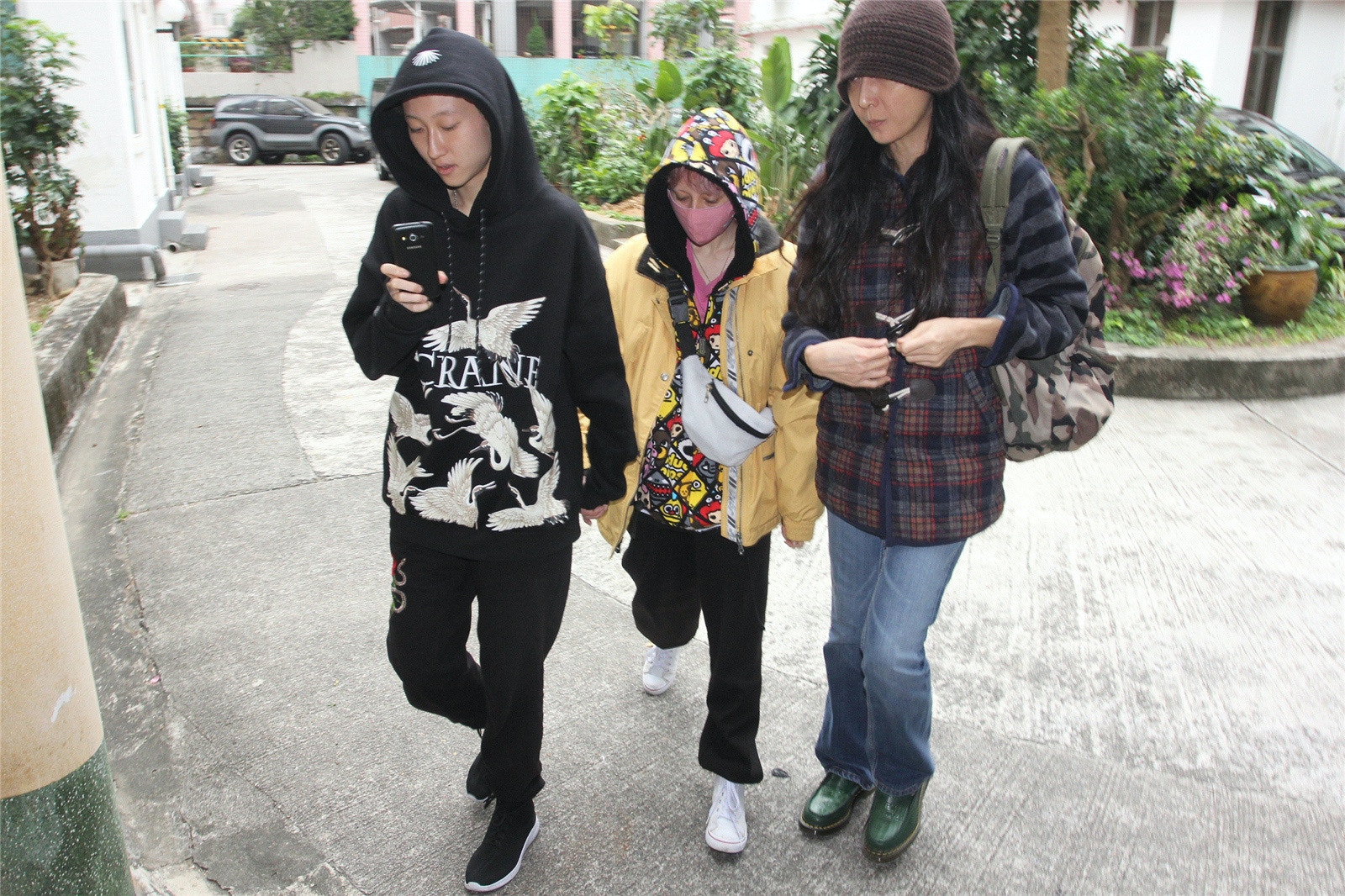 2018年12月14日,香港,明星现身街头。“小龙女”吴卓林与太太Andi,母亲吴绮莉(图源:VCG)