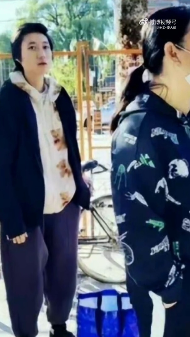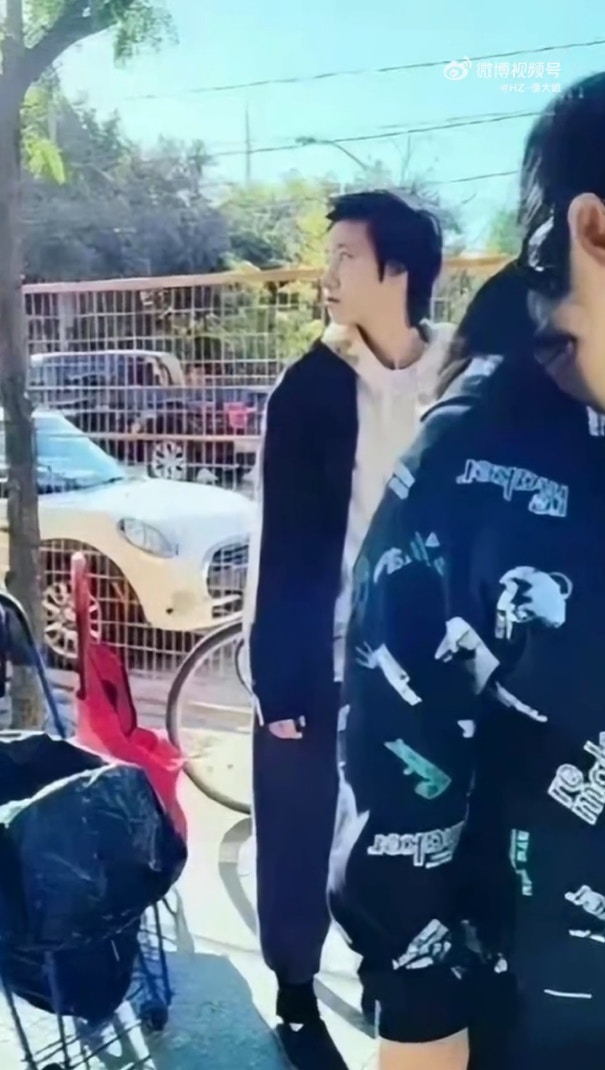 卓林疑似淪落街頭排隊領取免費食物(微博圖片)