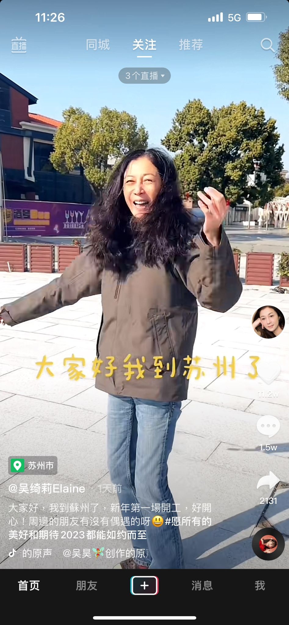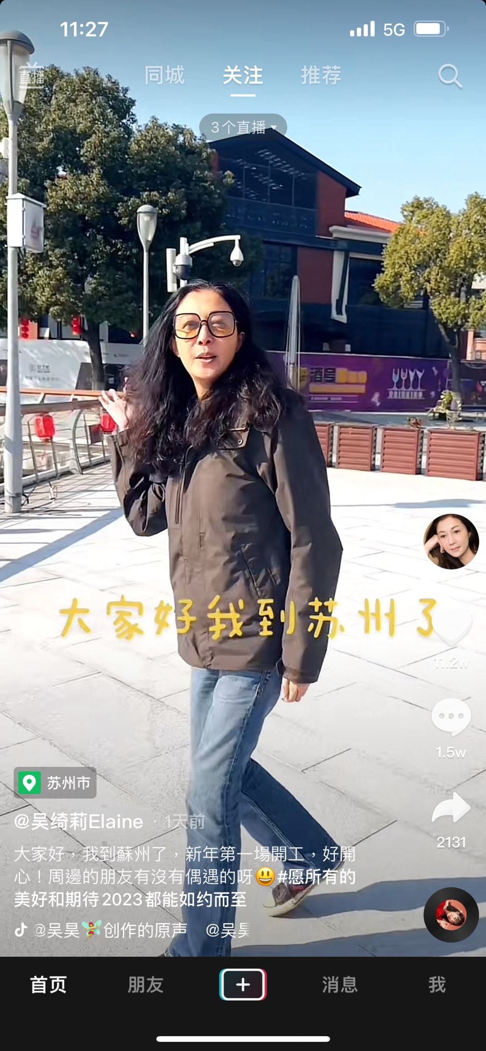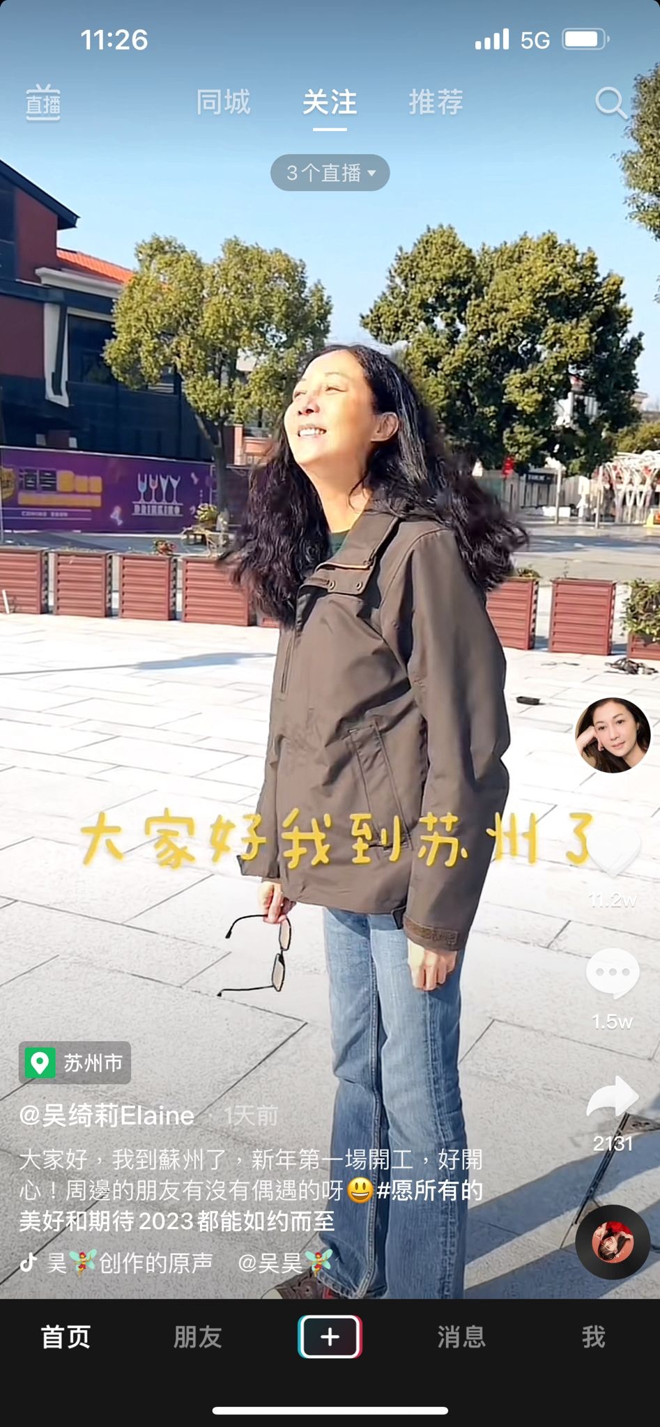心情靚爆的吳綺莉全素顏上陣,寫道:「大家好。我到蘇州了,新年第一場開工,好開心!周邊的朋友有沒有偶遇的呀?#願所有的美好和期待2023都能如約而至。」雖然50歲的吳綺莉顏值不及當年,但依然非常有魅力。