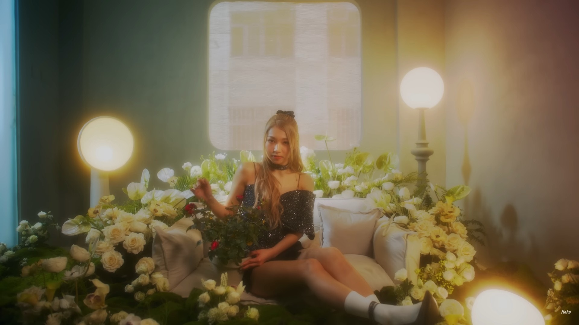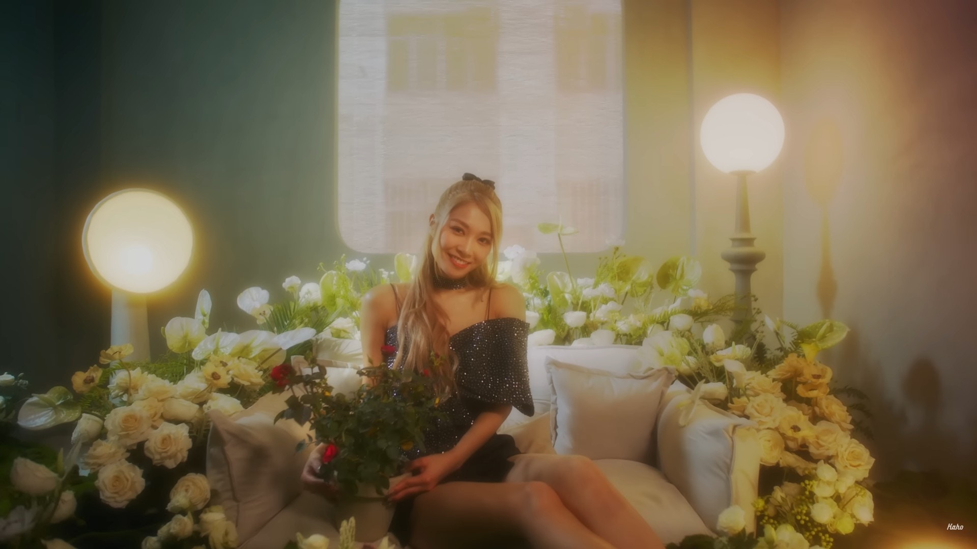 Kaho昨日(13/2)在IG上載MV女主角的背面相,穿上露肩晚裝的她留有一頭長金髮,不少網民紛紛競爭女主角的真正身份,亦有人以為Kaho真的成功邀請女神Rosé參與拍攝:「真係有Rosé睇?」、「請Rosé拍MV咁勁?」而答案終在昨晚揭盅,MV女主角是女團Lolly Talk成員劉綺婷(Yanny),穿上黑色閃片短裙的她大曬美腿,又經常露出超甜美笑容,網民不禁大讚:「女主角揀得好」,更封她為「港版Rosé」。