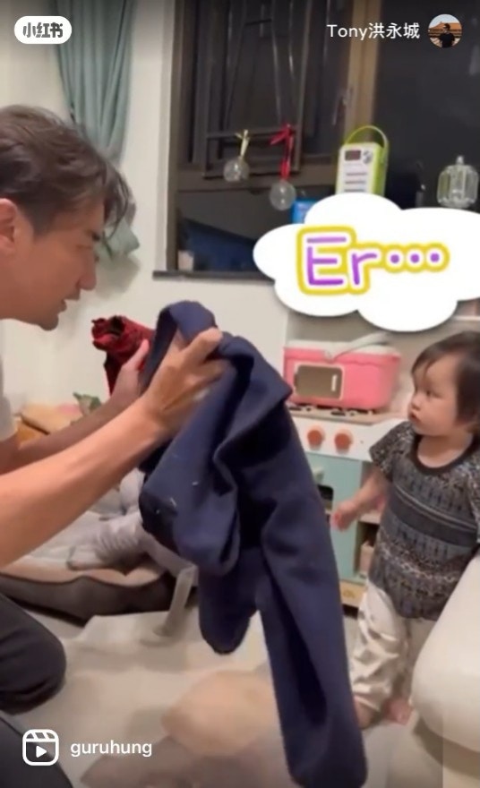 片中,洪永城先問女女喜歡着裙還是衛衣,Amber思考一會再揀了紅黑格仔裙。他接着再問女女着平底鞋或是波鞋,Amber選擇了波鞋令洪永城哭笑不得:「咁襯好似怪怪哋。」當他追問女女是否喜歡自己的造型時,Amber一邊揮手一邊以BB聲講拜拜,非常可愛。影片亦令洪永城家中大廳曝光,全屋以米白色為主行簡約風,客廳放置L形梳化後仍有大量活動空間,Amber的玩具亦隨處可見包括煮飯仔等等,猶如小型兒童遊樂場,空間闊落女女想點跑都冇問題!