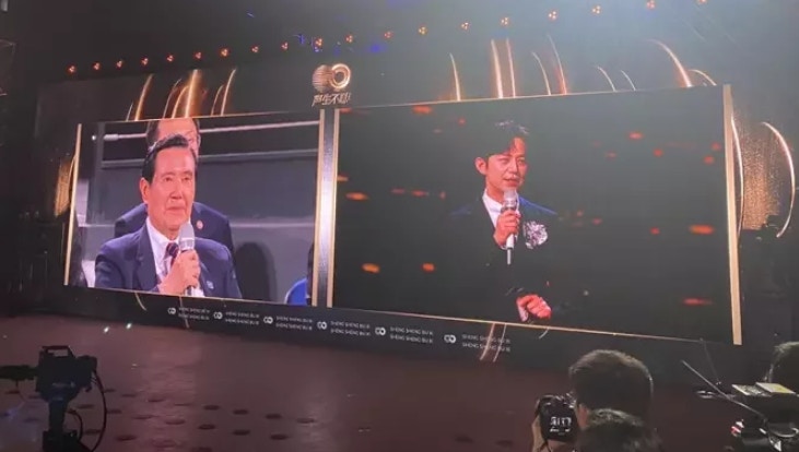 馬英九參與錄製《聲生不息‧寶島季》,接受主持人何炅的採訪,和那英及張信哲等多位歌手一起高歌《月亮代表我的心》。(影片截圖)