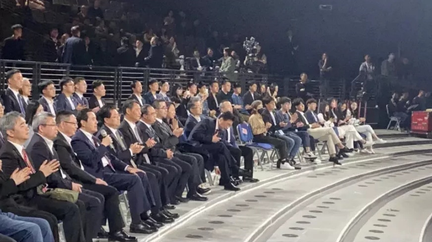 其後何炅要求馬英九唱兩句,馬英九先是一楞,何炅就說:「邀請你和歌手一起合唱《月亮代表我的心》,準備好了嗎?」後來包括那英和張信哲等兩岸歌手一起合唱《月亮代表我的心》,馬英九也跟著一起唱,同時還用腳打拍子。何炅還說「馬先生唱歌很好聽!」馬英九笑著回答:「這顯然是誤傳。」