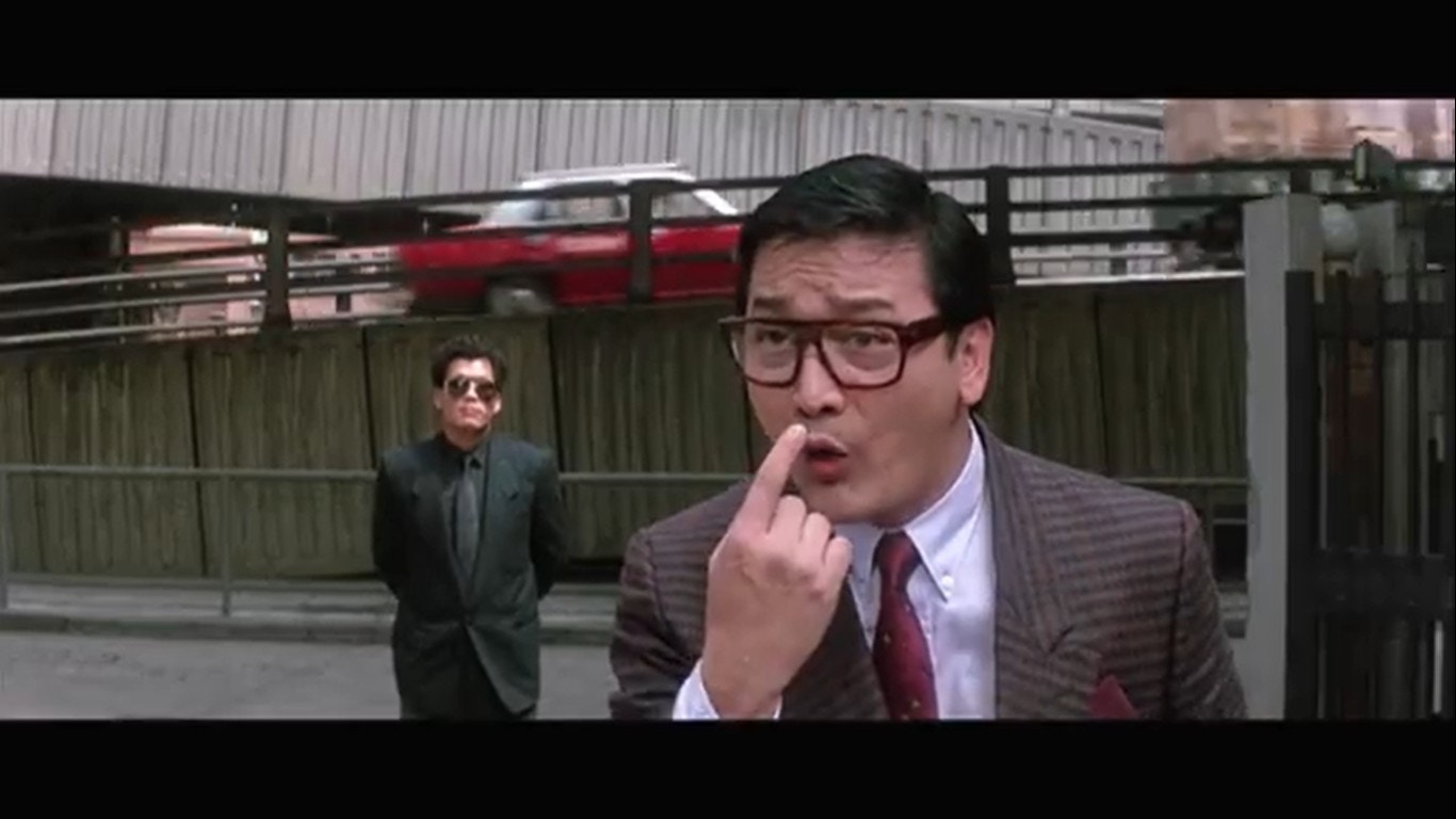 在《警察故事續集》,曹查理飾演最典型的斯文敗類角色。(《警察故事續集》影片截圖)
