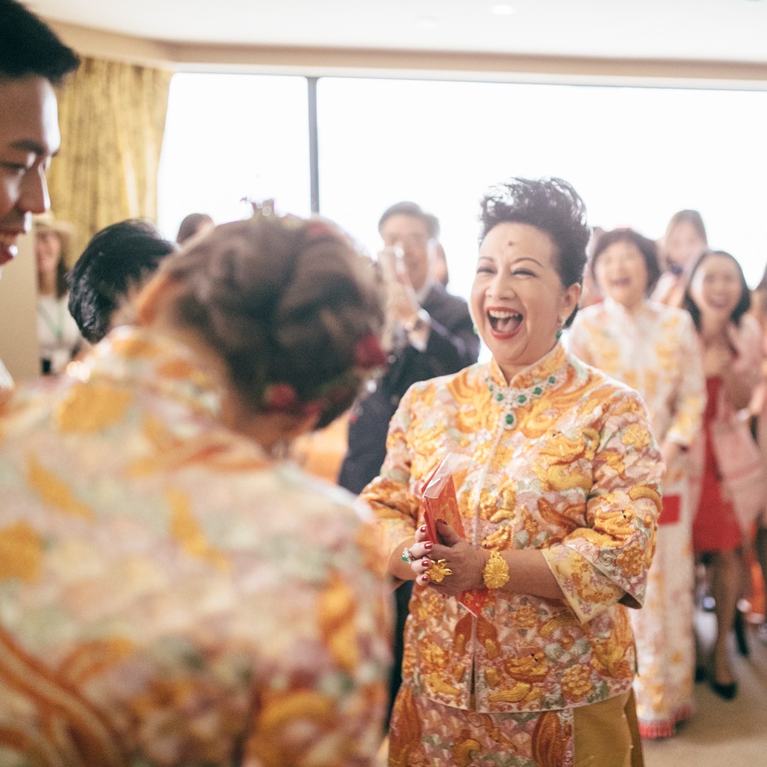 家燕姐同親家奶奶(圖右二)及Zoe婆婆(圖左二),都有著上媽媽裙褂,相當喜慶。