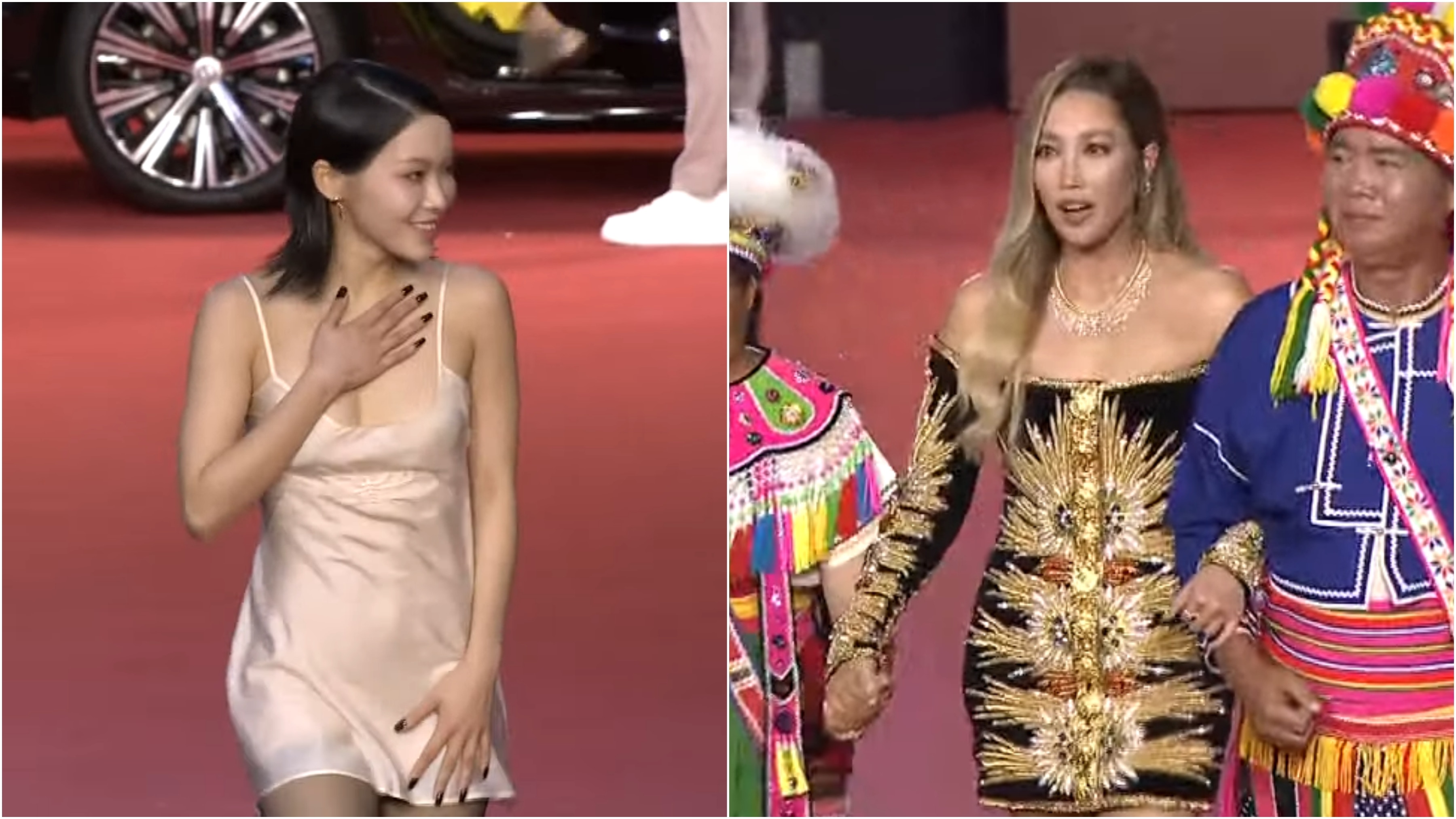 頒獎禮正式開始前的紅地氈環節也十分精彩,男神周湯豪、HUSH、A-Lin等,特別是A-Lin的金色女神Look和父母的原住民服飾,非常別出心裁及搶眼。