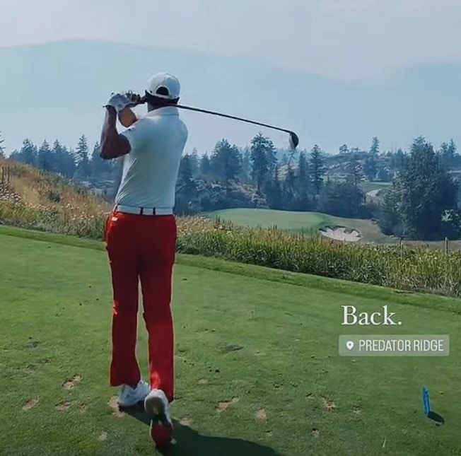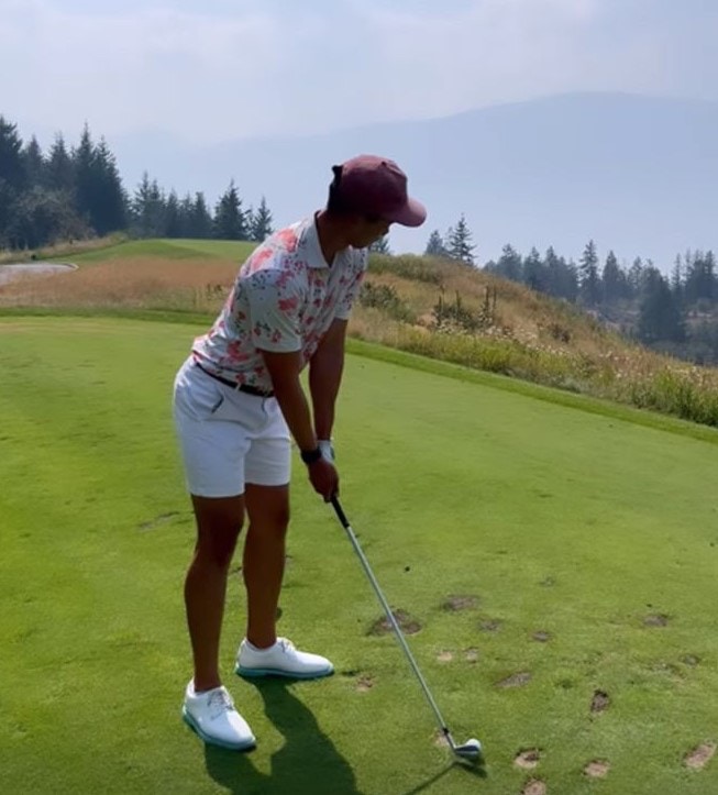 日前三哥一家人到戶外Golf,三哥穿上白色Polo衫和紅色長褲,戴上白色Cap帽和墨鏡,打Golf姿勢標準又純熟,加上身形高大壯碩和黝黑皮膚,洋溢男人味,愈來愈靚仔。而苗彤穿上小背心和短褲,同爸爸一樣戴帽和墨鏡,黝黑皮膚充滿青春健康氣息,只比爸爸矮半個頭,窈窕又靚女。而29歲仔仔苗俊穿上花色Polo恤,同爸爸一樣高大威猛。
