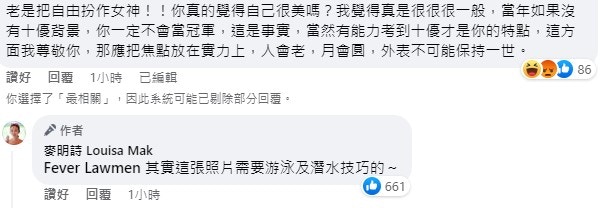 麥明詩高EQ反擊網友。(Facebook圖片) 點擊睇Louisa死海比堅尼美照以及她的其他靚相:
