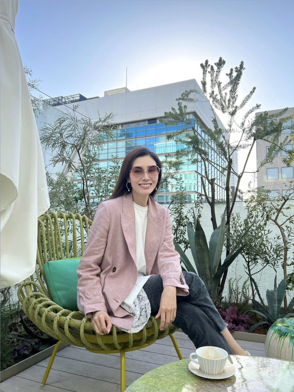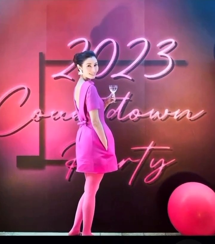 李嘉欣以PINK LADY造型參與派對。(IG@michele_monique_reis)