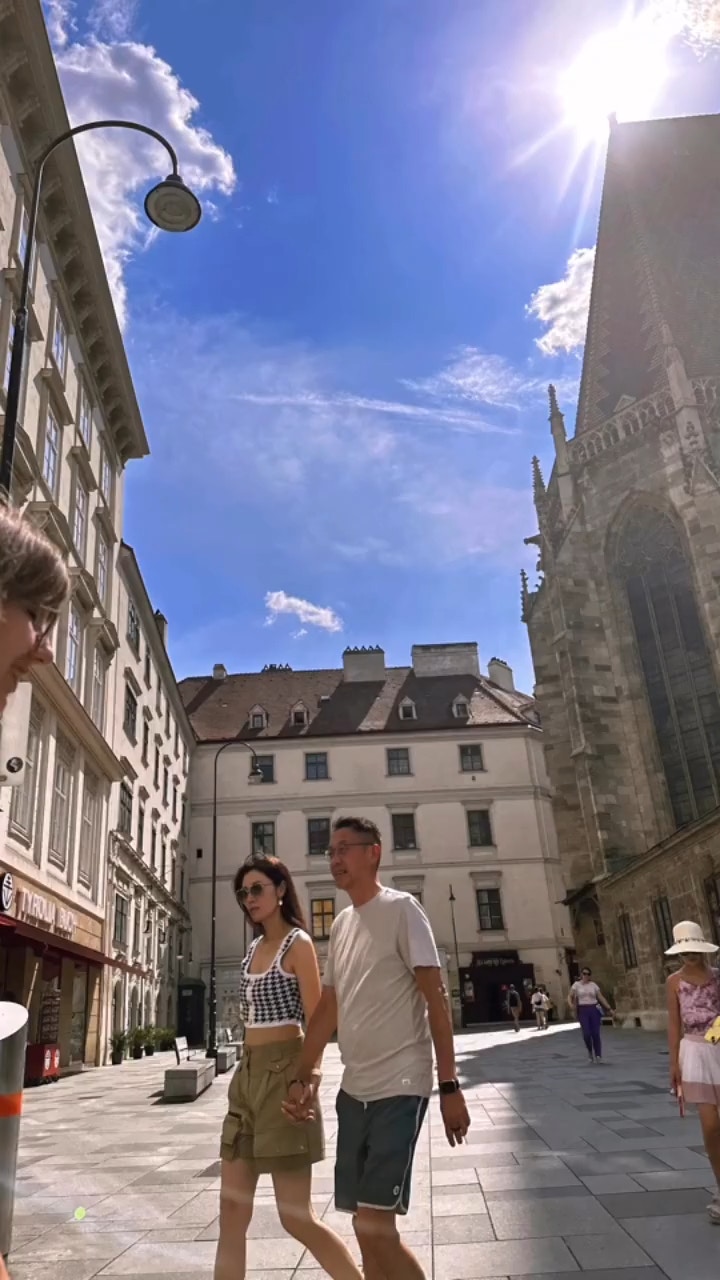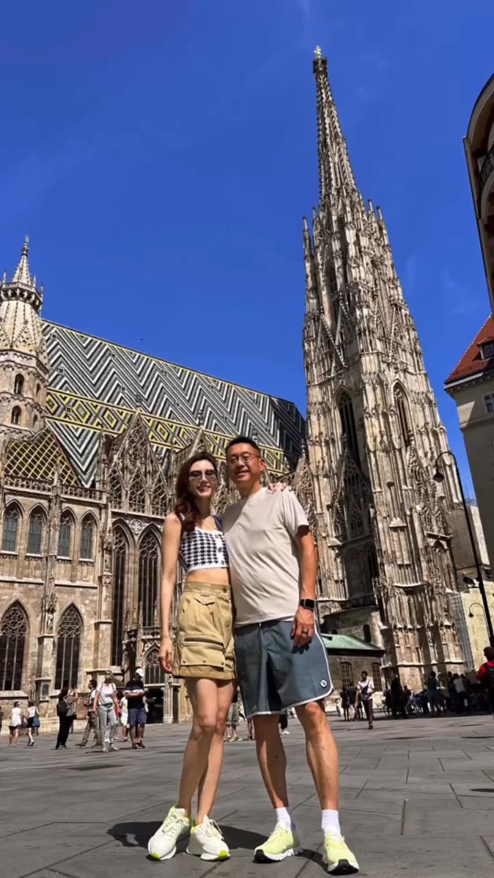 兩公婆在著名景點聖斯德望主教座堂前留影。(影片截圖)