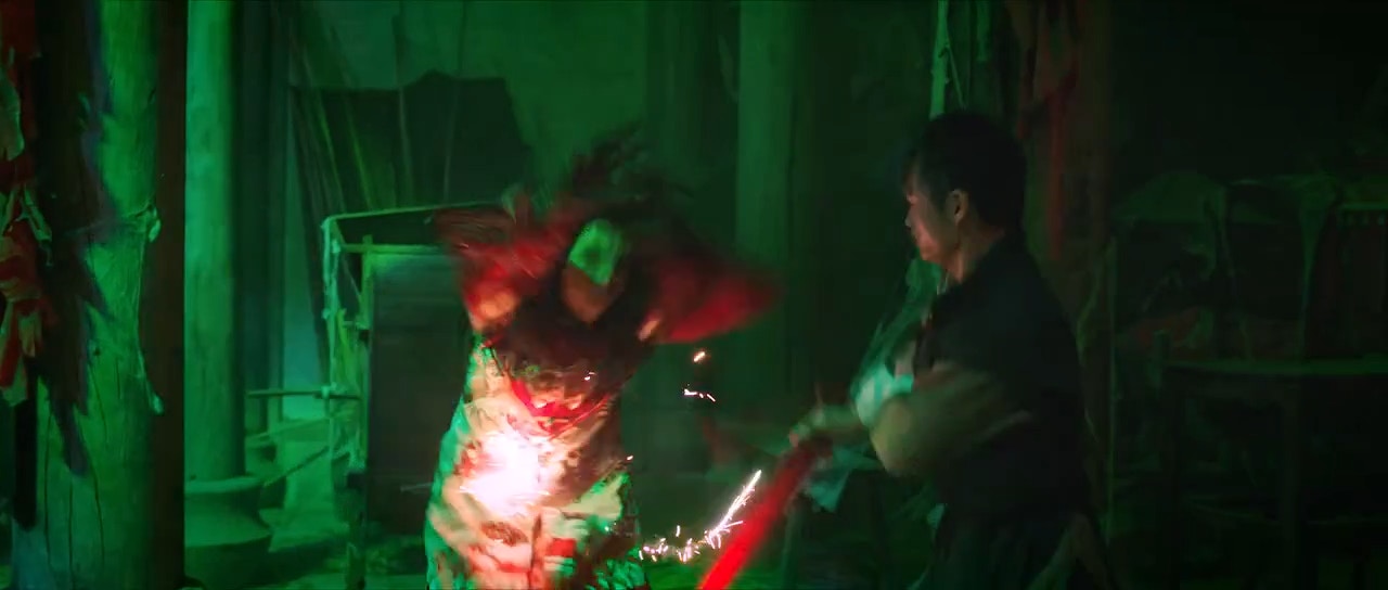 桃木劍作法降殭屍特技效果逐格睇。(《黃廟村怪談》網大截圖)