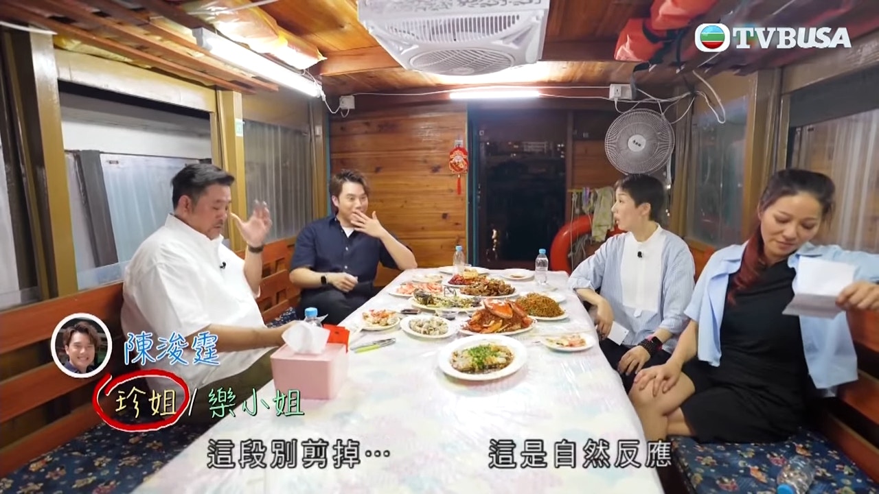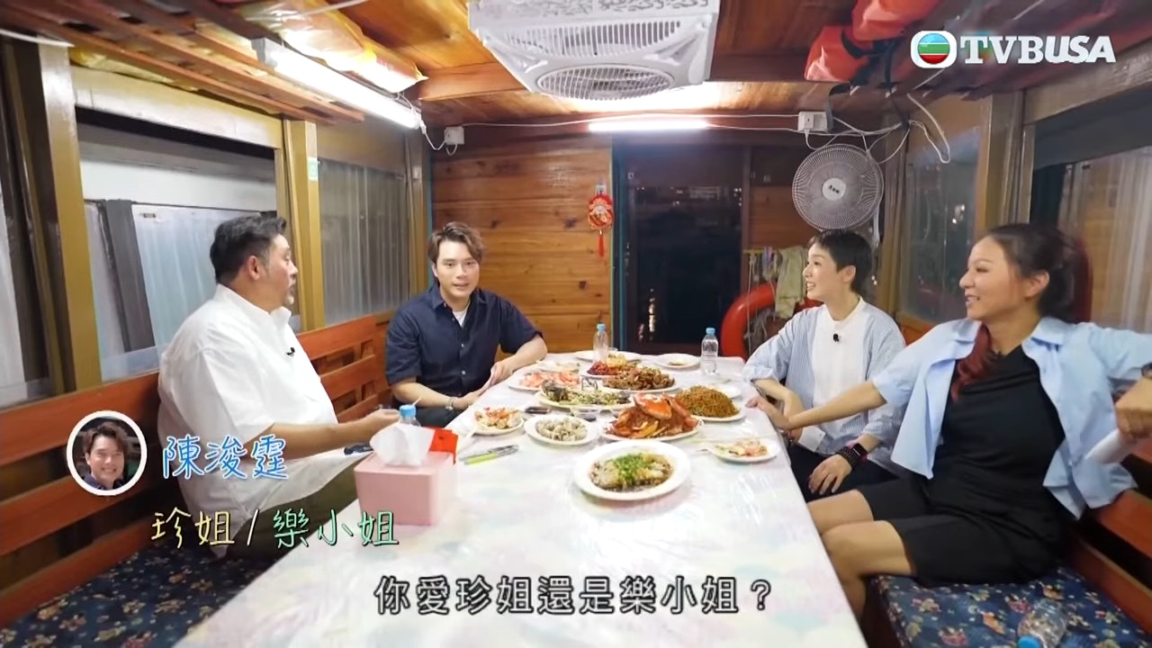 江美儀、滕麗名、麥長青、陳浚霆多年前合作拍攝TVB節目《街市遊樂團》大受歡迎,近日他們再次合作,拍攝節目《約埋班Friend遊香港》,日前(9日)播出第一集,四人到中環街市逛懷舊小店和嘆懷舊美食,之後又一起坐船出海歎海鮮,期間大玩快問快答,陳浚霆被問到「你揀珍姐(曾勵珍)定樂小姐(樂易玲)?」時,即秒答「珍姐!」陳浚霆解釋:「而家畀嘢我做呀嘛,你問我喎。」但其後又補鑊:「樂小姐,我對你點,你知嘅。」