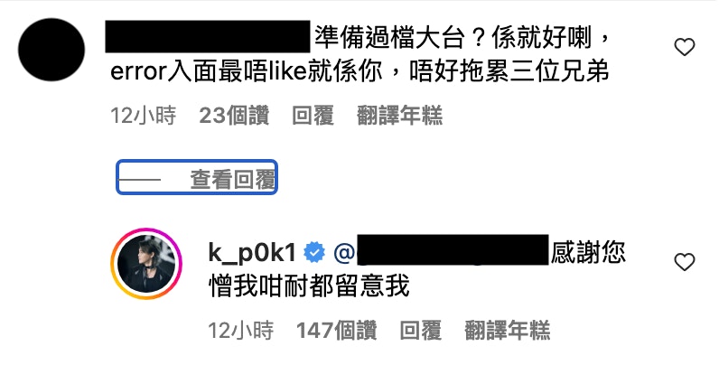 有網民就覺得,兩年前Gigi剛出道,不認識她也很正常;但卻也有人覺得保錡擦鞋搏上位,而留言區亦掀起了一片罵戰。儘管兩台歌手互相表達欣賞之情,但粉絲卻似乎水火不容,有人稱:「Bye, 保錡 好X失望,unfollow咗了🙏🏻」、「你咩料呀,同佢合照,我真係對你好失望😓😓」、「我明大佬你對同行都會有份尊重。不過都請你考慮吓兩邊fans嘅感受」等,相信保錡都始料不及,但亦有高EQ回覆部分人說:「你有沒有聽我的新歌?」、「感謝您憎我咁耐都留意我」不過,捱鬧的保錡亦吸引了一班Gi炎粉留言表達支持。