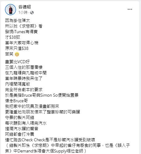 《求戀期》是1997年7月10日上映的一部香港愛情喜劇電影,由谷德昭執導,古巨基、蘇志威、雷頌德、黎姿、張燊悅及張沅薇主演,海味飾演的陳太可謂少男們夢中情人。谷德昭回憶:「因為掛住陳太所以找《求戀期》看,發現iTunes有得賣才$38蚊,當年大家咁俾心機原來只值$38,苦笑 😬」