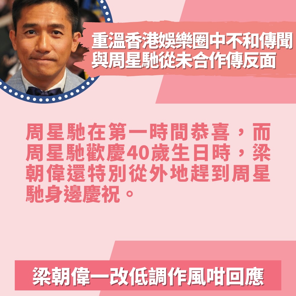 重溫圈中不和傳聞 梁朝偉被指與周星馳反面 一改低調作風咁回應(01製圖/微博@朱丹在香港/Getty Images)