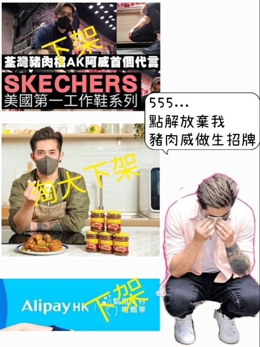 8月15日,網民整合了威威最近的廣告及代言,指自從威威除罩後有不少的廣告已經下架 。(網上圖片)