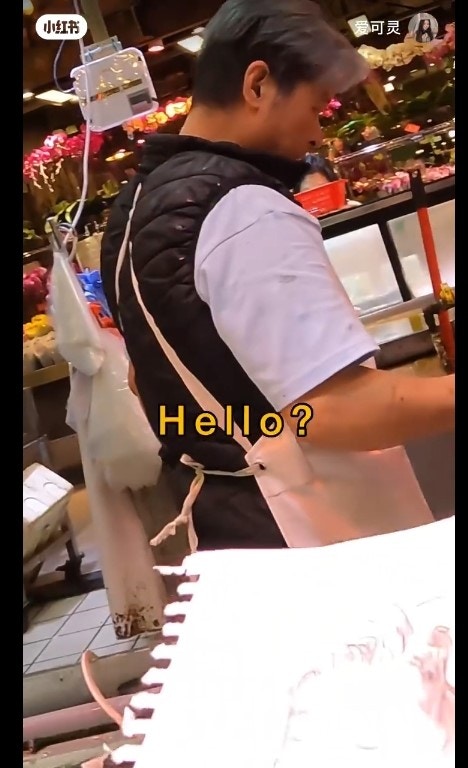近日街市流傳一位賣魚的白髮型佬,撞樣黃子雄。(小紅書)