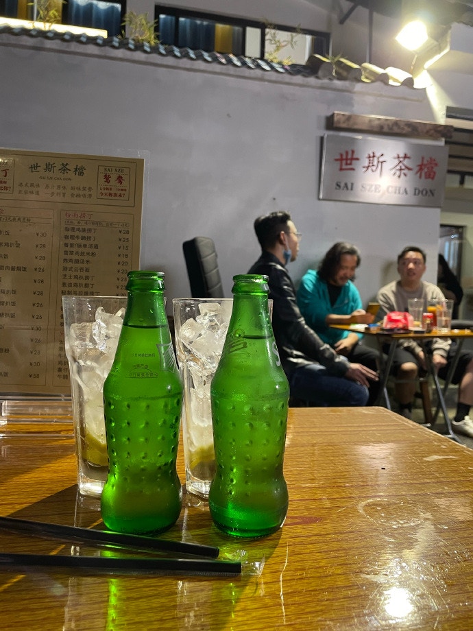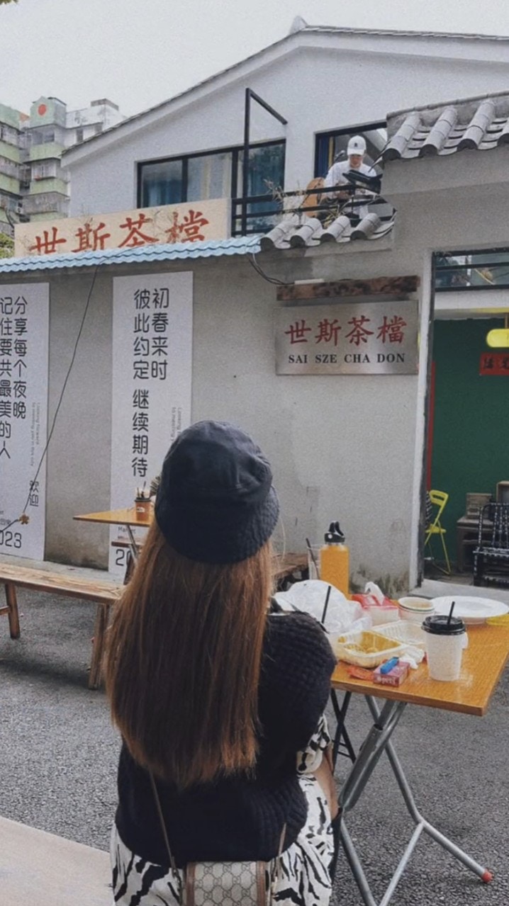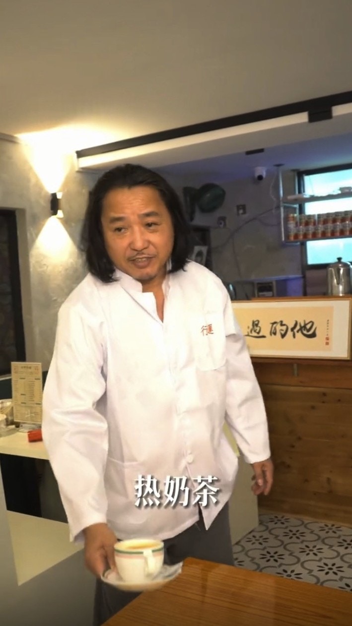 古明華在江門開了一間主打港式茶餐廳美食的餐廳。(微博圖片)