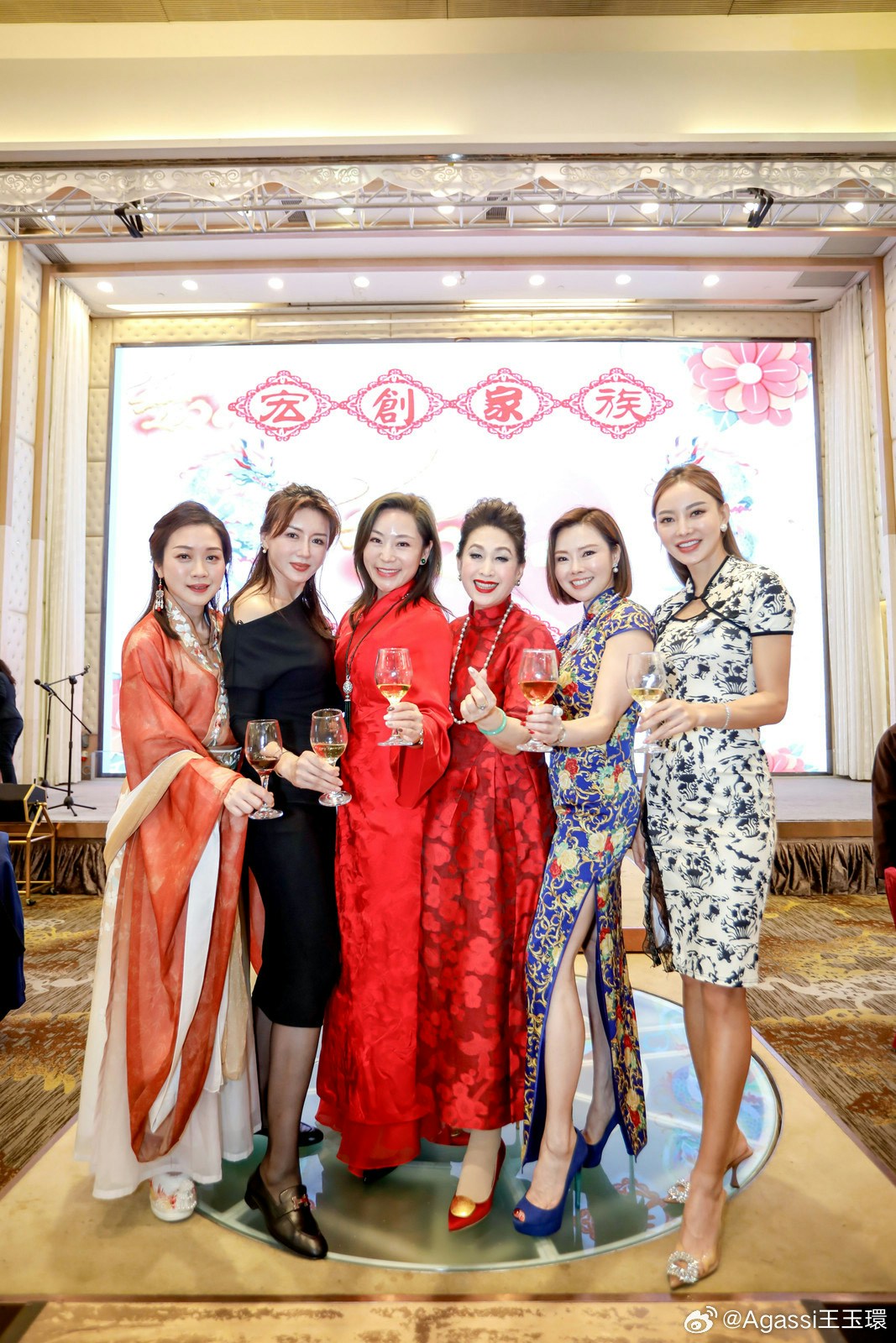 旗袍look。(微博@Agassi王玉環)