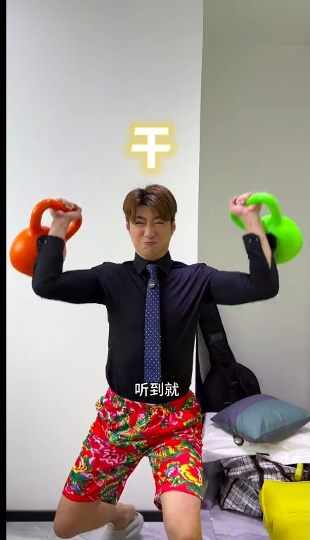 成日都秀肌肉。(抖音)